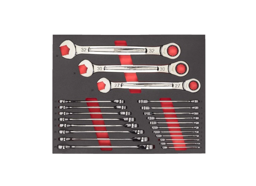 Склад набору: Гайковий ключ на 6, 7, 8, 9, 10, 11, 12, 13, 14, 15, 16, 17, 18, 19, 20, 21, 22, 24, 25, 27, 30, 32 мм .