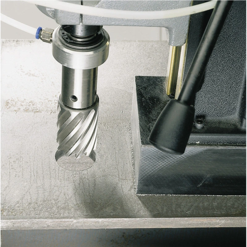 Потужність 1200Вт; хвостовик Weldon 19; крутний момент 85Нм; швидкість 300-640 об/хв; макс. діаметр фрези 42мм; макс глибина 50 мм; вага 11,5; страхувальний ремінь; набір ключів; СОЖ; кейс Особливості Електронна панель управління забезпечує зручність у роботі Електронний блок забезпечує регулювання швидкості, м'який старт, обмеження швидкості холостого ходу та захист двигуна від навантаження. Потужна електромагнітна стійка гарантує стійкість та безпеку Поставляється зі страхувальним ланцюгом, мастильно-охолоджувальною рідиною та шестигранними ключами. Потужність 1200 Вт двигуна, що передається через триступінчастий редуктор, дозволяє свердлити за допомогою коронок отвори у сталевих виробах діаметром до 42 мм. Легка, компактна та потужна електромагнітна стійка Характеристика Потужність (Вт) 1200 Швидкість без навантаження (про/хв) 300-640 Швидкість при навантаженні (об/хв) 170-330 Макс. діаметр протягування (мм) 42 Макс. глибина протягування (мм) 50 Макс. діаметр свердління буровою коронкою (мм) 16 Макс. крутний момент (Нм) 85 Сила магнітного утримувача (при тиску на наконечник бура) (Н) 10.000 Вага (кг) 11.5 Постачається в Кейсі