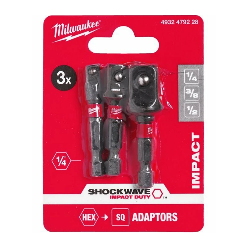 Набор переходников ShW MILWAUKEE, з 1/4'' Hex на квадрат (1/4", 3/8", 1/2")