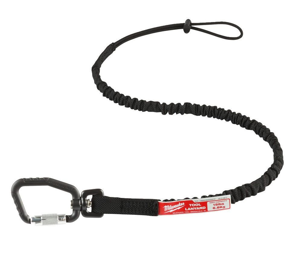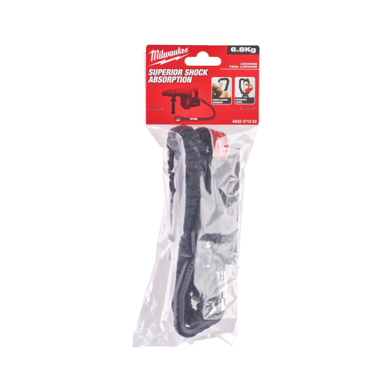 Амортизуючий елемент - поступово знижує швидкість інструмента, що падає, до нуля, знижуючи зусилля "ривка". Карабіни з подвійним блокуванням забезпечують надійне кріплення, яке захищене від випадкового розчеплення. Вбудоване поворотне з'єднання (вертлюг) - запобігає перекручуванню та заплутуванню. Колір ремінця відповідає максимальній вазі інструменту - легкість у підборі відповідного ремінця за вагою інструменту Спеціальні аксесуари дозволяють приєднати будь-який інструмент до ремінця. Комплект поставки: Страховий еластичний строп Milwaukee для електроінструменту вагою до 6.8 кг - 1 шт.
