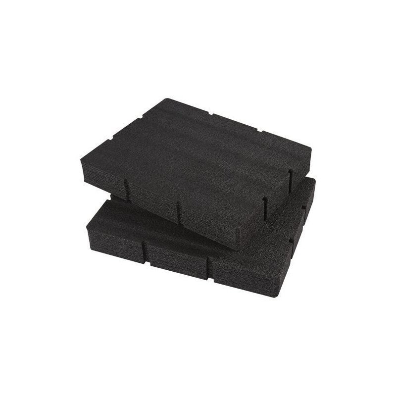 Вставка із спіненого матеріалу для ящиків із висувними відсіками. Вставка зі спіненого матеріалу дозволяє організувати надійне зберігання так, як ви хочете, вирізаючи місця під інструмент. Налаштуйте вставку зі спіненого матеріалу за 4 простих кроки: 1. Обведіть інструмент маркером INKZALL™. 2. За допомогою ножа виріжте контур. 3. Зніміть шар на бажану глибину. 4. Поставте інструмент у вставку зі спіненого матеріалу. 4932479157 містить 2 вставки. 1 вставка відповідає висоті ящика з трьома висувними відсіками (4932472130); 2 вставки відповідають висоті ящика з 2-ма висувними відсіками (4932472129).