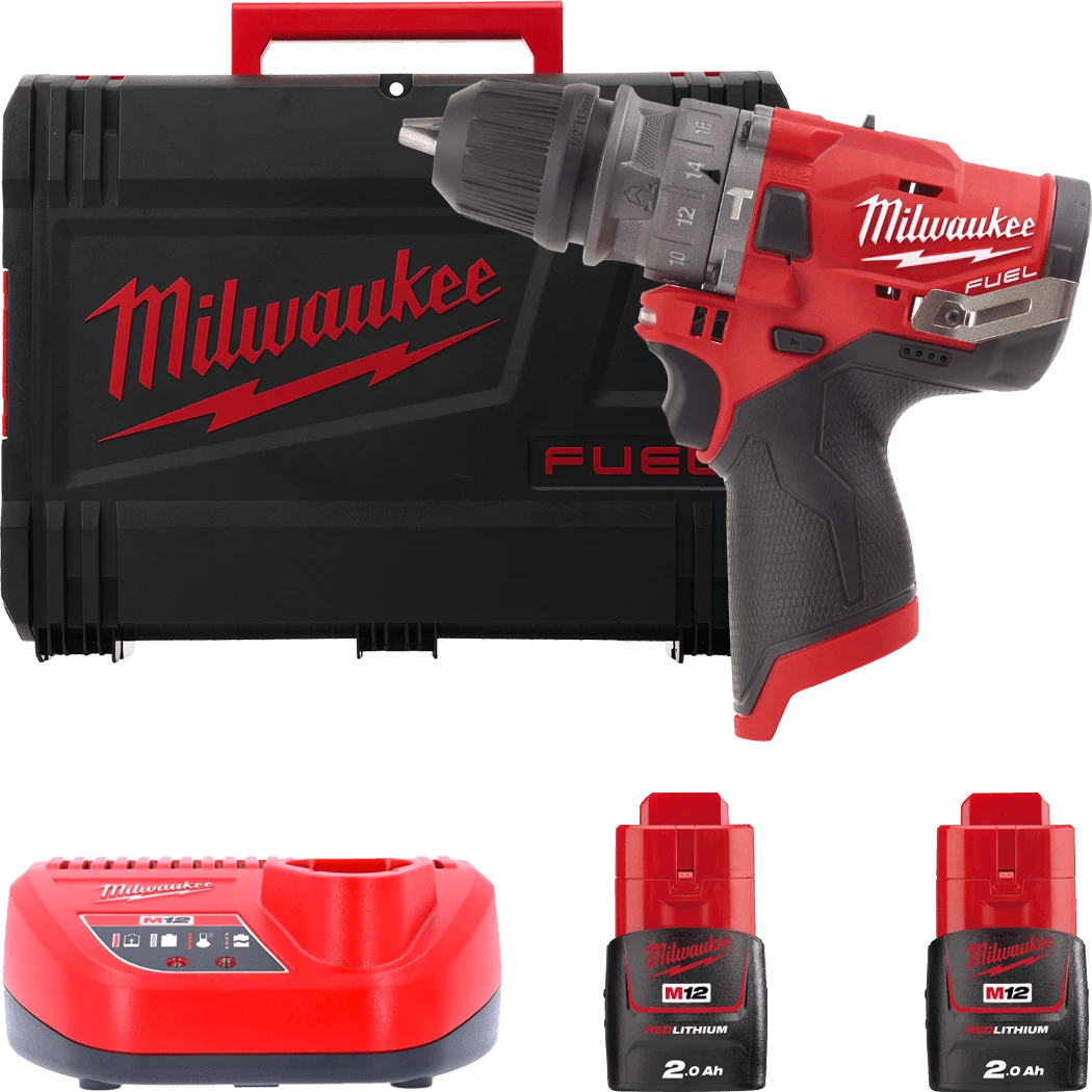 MILWAUKEE Дриль-шурупокрут з ударом акумуляторний , M12 FPDX-202X, 37Нм, (+ заряд.пристрій, 2 акум.Х 2Аг, патрон FIXTEC, кейс) | 4933464136