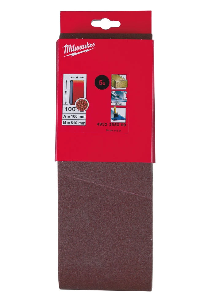Стрічка шліфувальна абразивна MILWAUKEE, 100х610, зерно 100 (5шт)