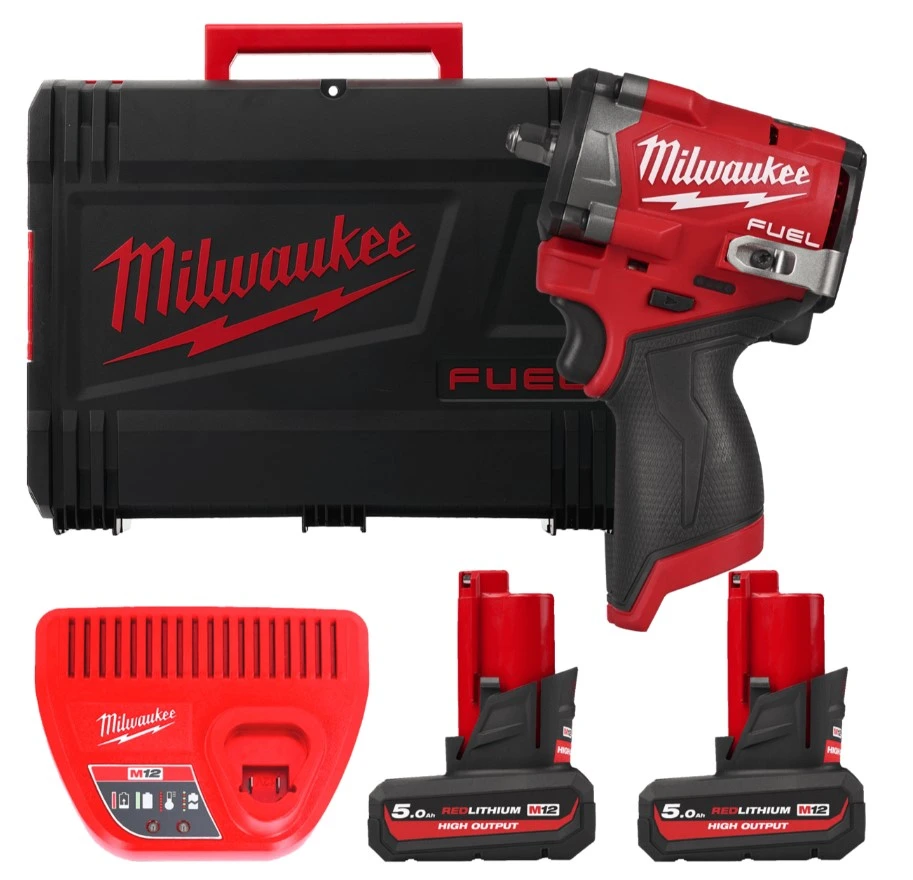 Гайковерт акумуляторний 3/8'' MILWAUKEE з кільцем M12 FCIWF38G3-502X, 745Нм (зарядний пристрій, 2 акум. Х 5Аг, HDкейс)