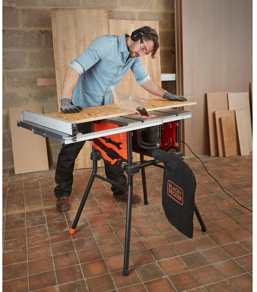 ✔ Пила оснащена декількома функціями безпеки, що забезпечують комфорт при різанні, наприклад, направляюча огородження повної довжини, штовхаюча планка, велика кнопка виключення для швидкої деактивації пристрою.