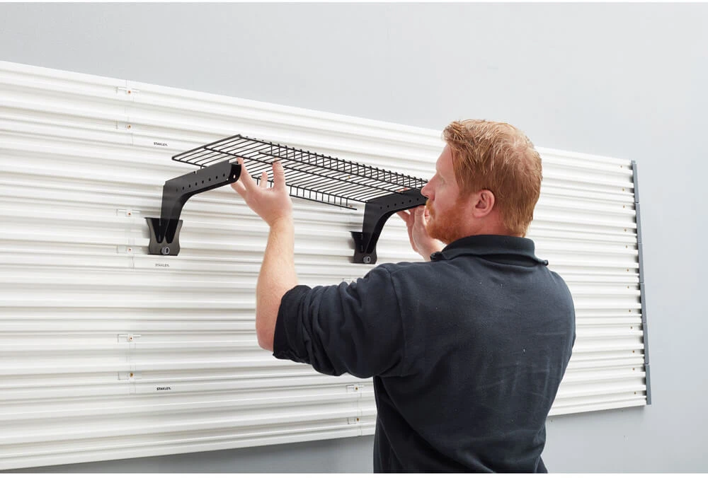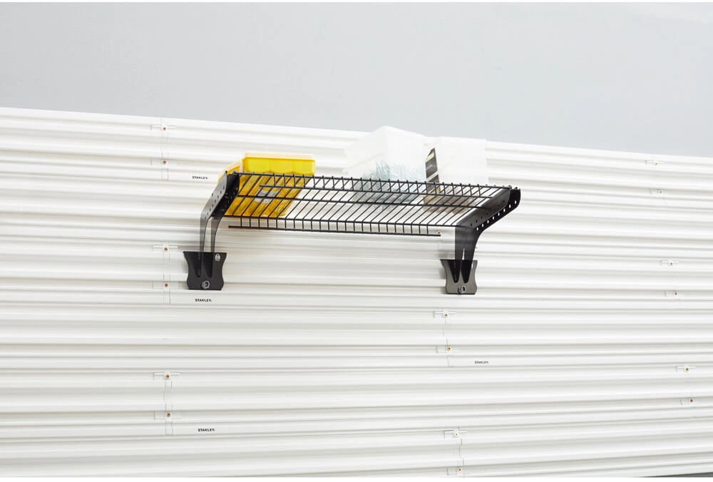 ✔ Дротова полиця кріпиться до напрямної стіни (у поєднанні з поличковими кронштейнами, що продаються окремо), забезпечуючи ідеальне рішення для зберігання невеликих інструментів, витратних матеріалів та обладнання для організованого гаража або майстерні