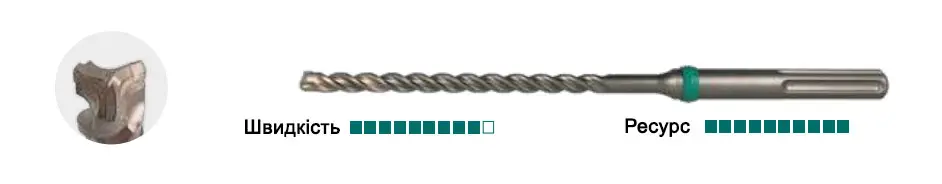- З утопленою твердосплавною головкою для забезпечення максимальної міцності при влучанні в арматуру, та енергійного просування в бетоні.
