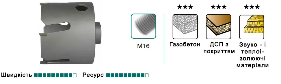 - Тривалий термін служби завдяки твердосплавним ріжучим кромкам, що переточуються..
