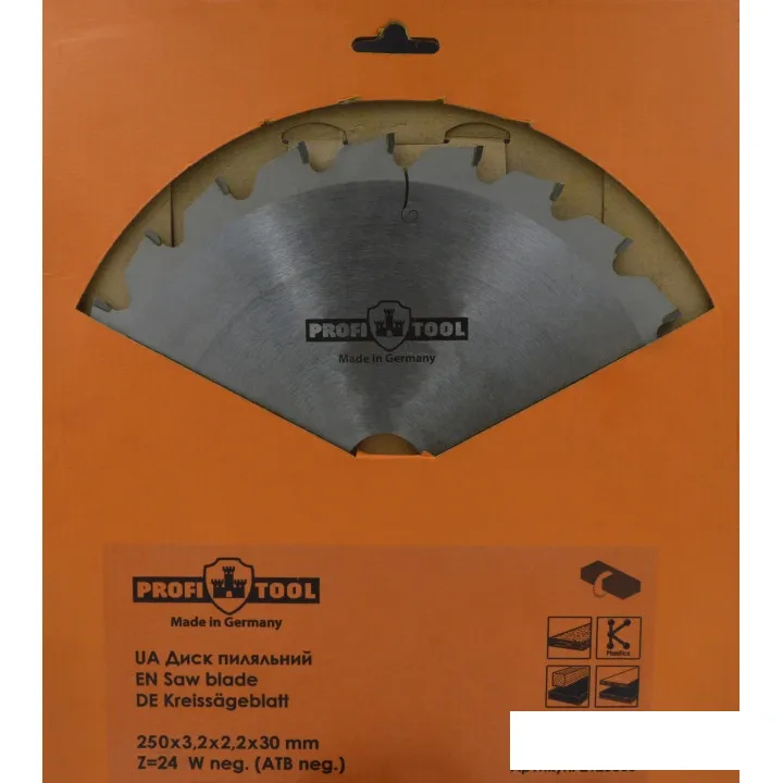 Диск пильный по дереву 250х3.2х2.2х30 мм, Z=24, форма зуба Wneg (ATBneg), поперечный рез PROFITOOL ( ПРОФИТУЛ )