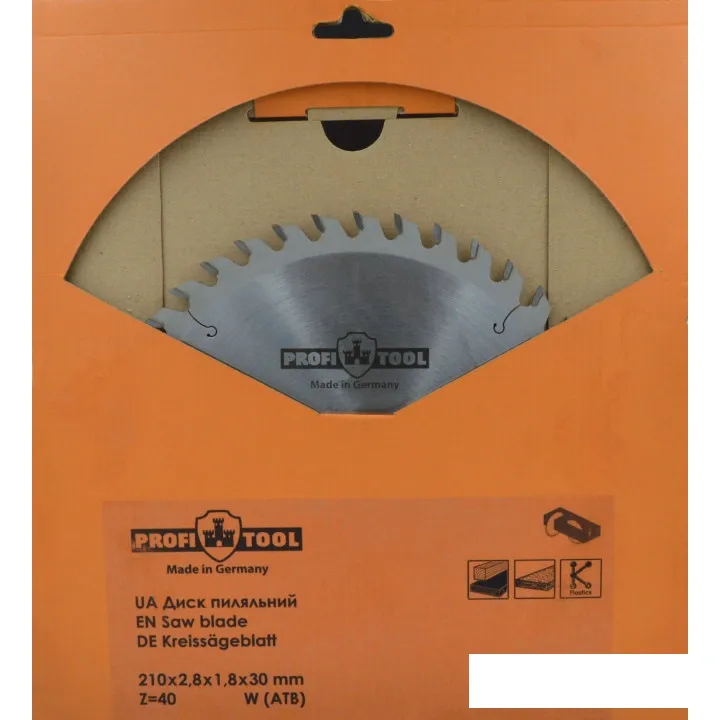 Диск пиляльний PROFITOOL - 210х2,8х1,8х30 мм Z=40, W (ATB) (2121004)