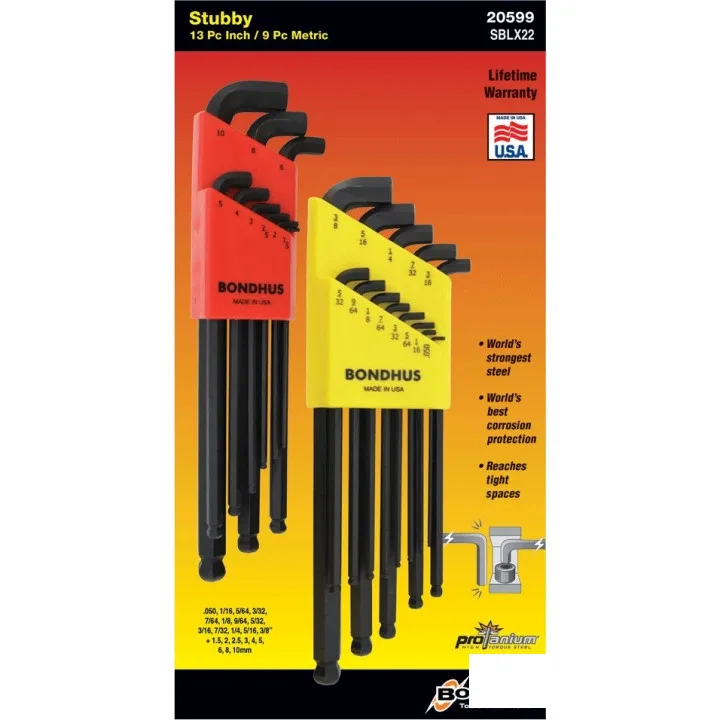 Набір ключів BONDHUS шестигранних 9 шт, 1.5/2.0/2.5/3.0/4.0/5.0/6.0/8.0/10.0 мм сферич.