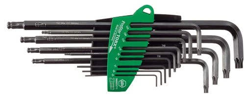 Компактный футляр ProStar позволяет просто извлекать каждый отдельный ключ, не сдвигая другие.Сферическая головка TORX® позволяет закручивать под углом до 25°.С удлиненным профилем TORX® за сферической головкой.Состав набора: