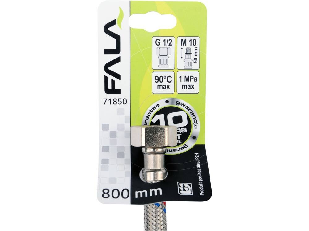 Шланг водопровідний з опліткою з нерж сталі FALA l= 800мм Ø= 8/12, з'єдн F-1/2" х M-M10x1- 50мм 1МПа