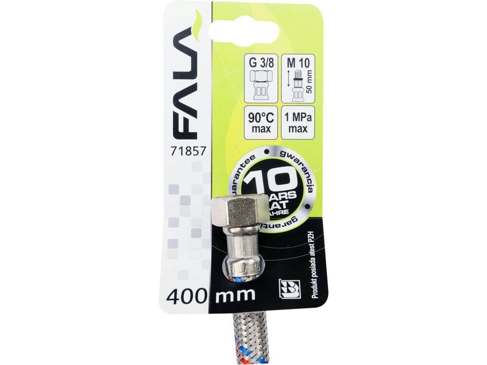 Шланг водопровідний з опліткою з нерж сталі FALA l= 400мм Ø= 8/12, з'єдн F-3/8" х M-M10x1- 50мм 1МПа
