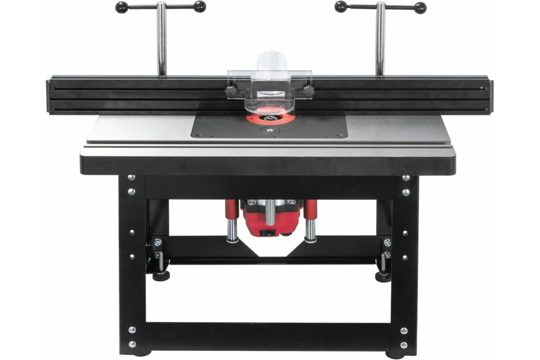 Підставка відкрита для фрезерного столу 98600W. Зроблена зі сталевого профілю, оснащена ніжками, що регулюються, з гумовими накладками. Розміри (ДхШхВ) – 560х370х365 мм, вага – 6 кг. Особливості: Корпус із чавунного лиття Два Т-подібні пази Два прорізи для кріплення фрезерного упору Гвинти для регулювання висоти (рівня) пластини