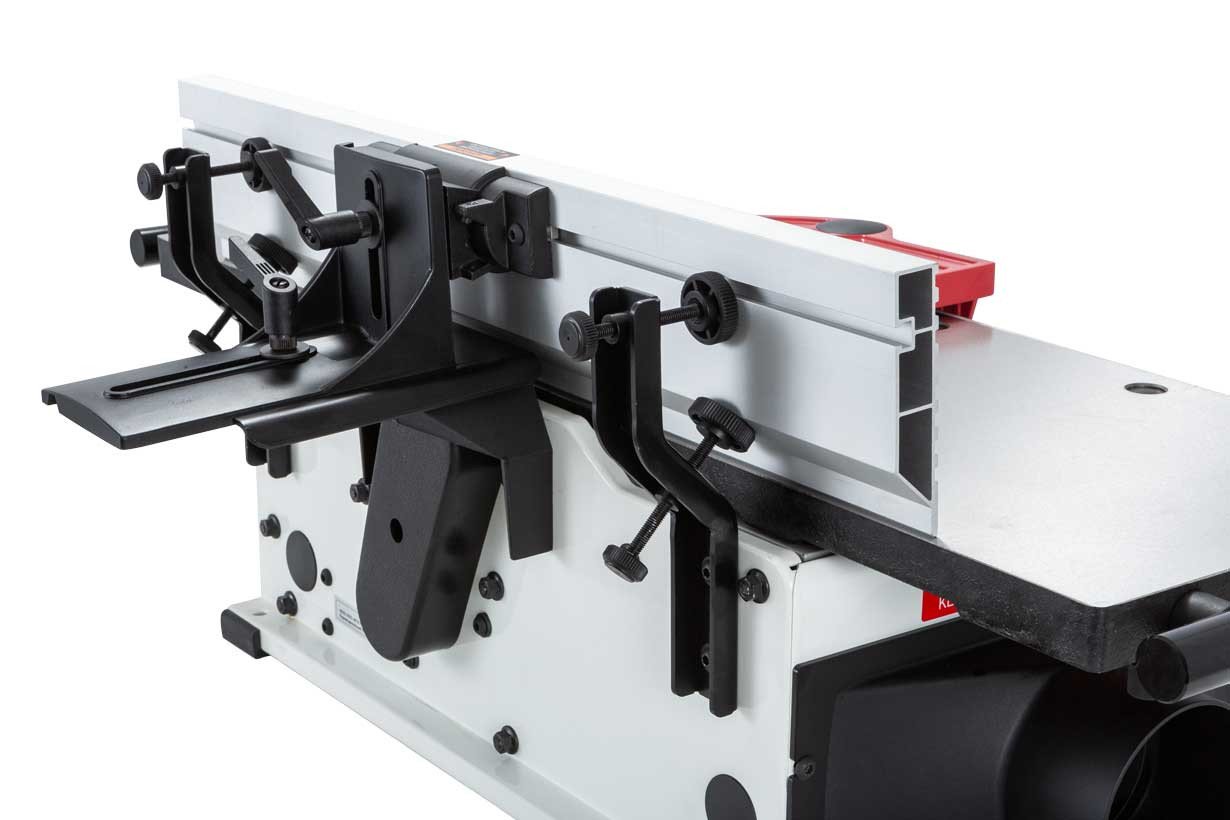 А паралельний упор, виготовлений з екструдованого алюмінію, має невеликий виліт і додатково може бути зафіксований кронштейнами, що опціонально поставляються для посилення жорсткості при фугуванні важких довгих заготовок.Висувні подовжувачі збільшують опорну поверхню майже до 1400 мм і мають юстування по площині відносно столів, що подає і приймає.