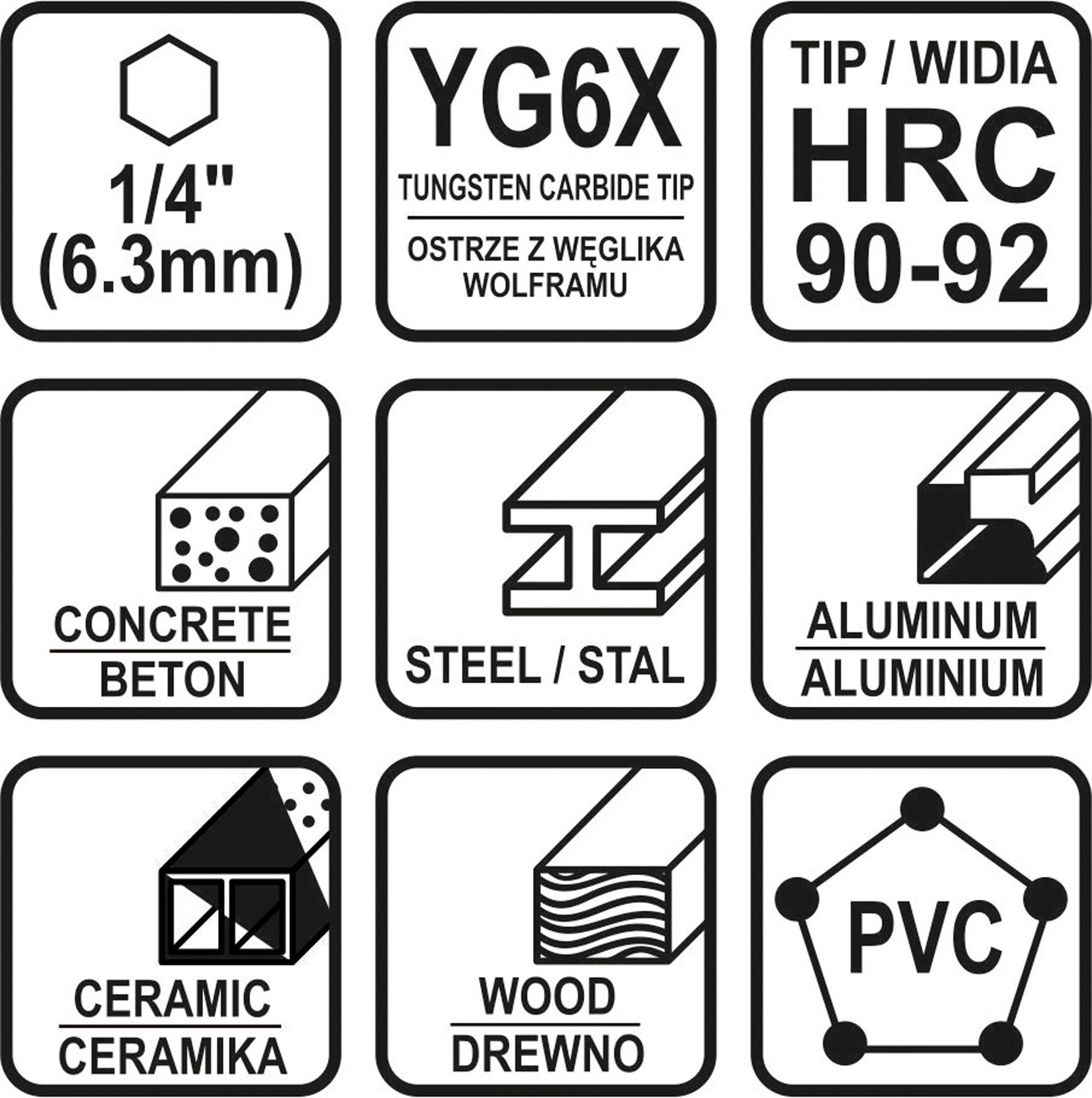 STHOR Набір свердл універсальних : YG6X, з 6-гран. хвостовиком-1/4", Ø= 4, 5, 6, 8, 10 мм, 5 шт | 21695