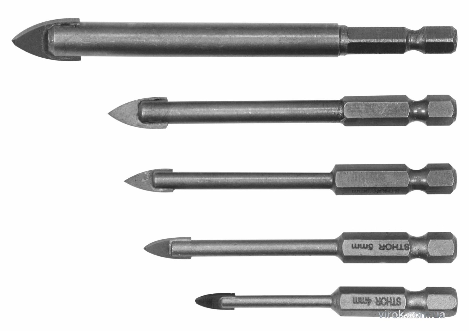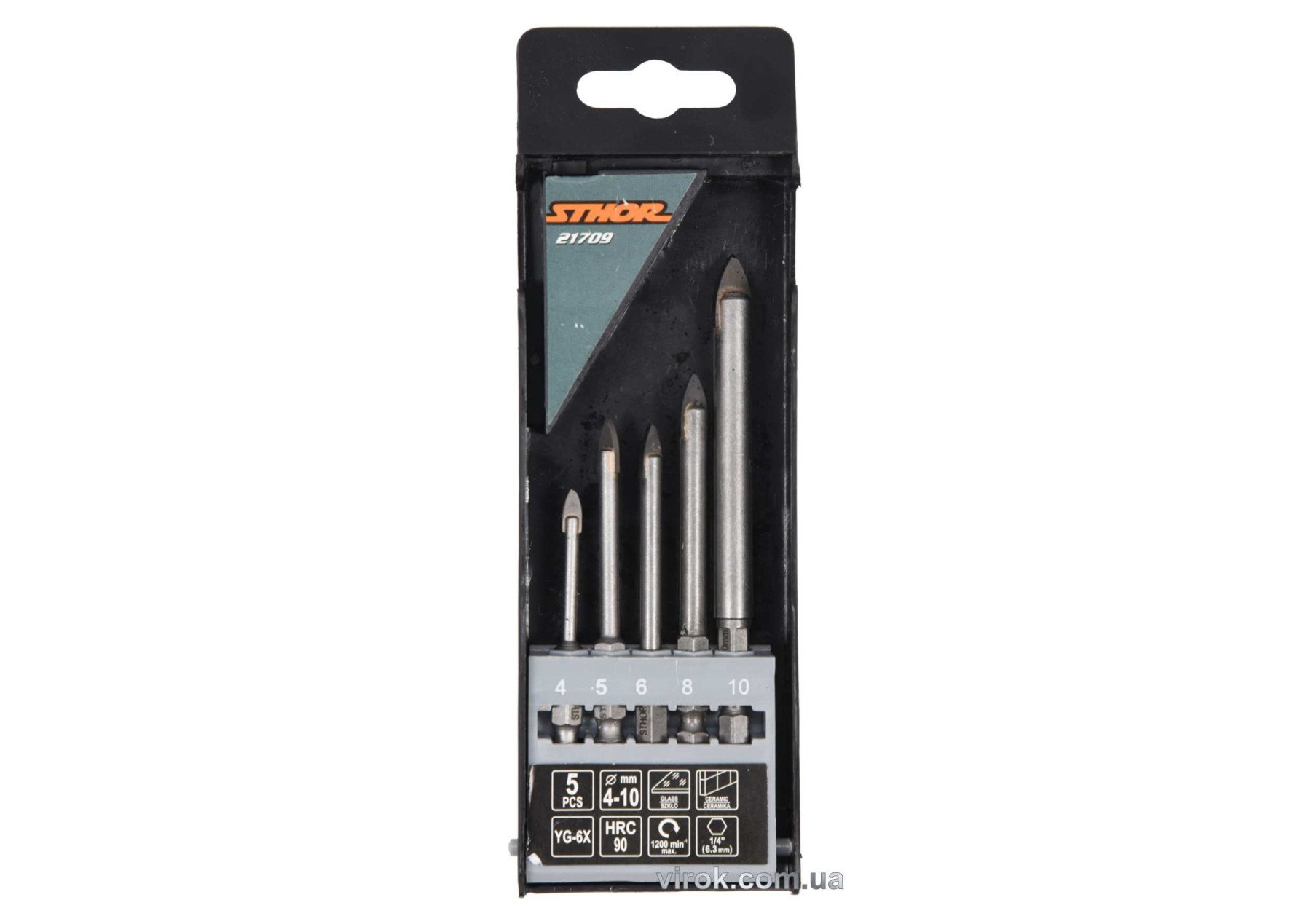STHOR Набір свердл по склу і кераміці : Ø= 4, 5, 6, 8, 10 мм, YG6X, HEX-1/4", 5 шт | 21709