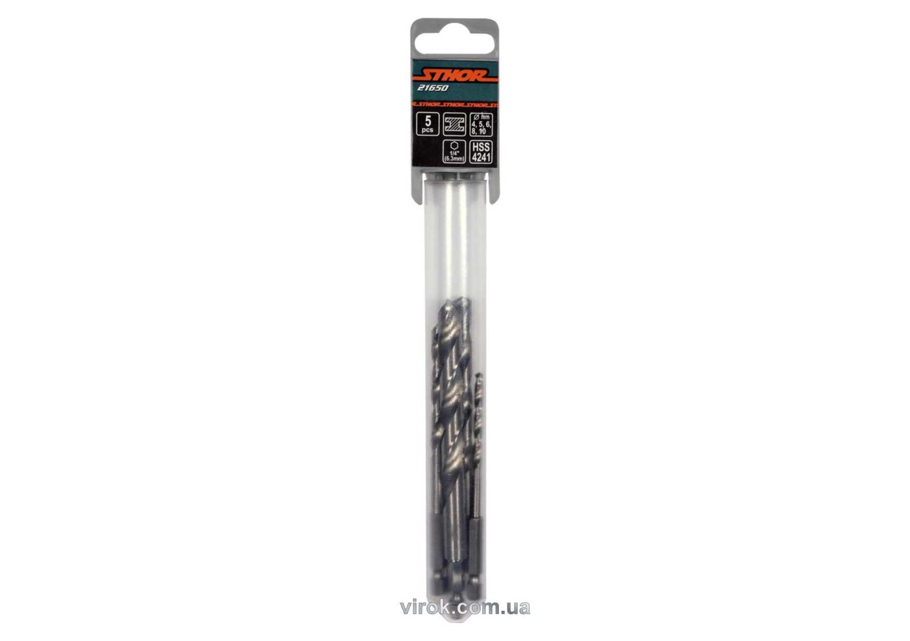 STHOR Набір свердл по металу : 6-гранний хвостовик HEX 1/4", HSS. Ø=4, 5, 6, 8, 10 мм, 5 Шт. | 21650