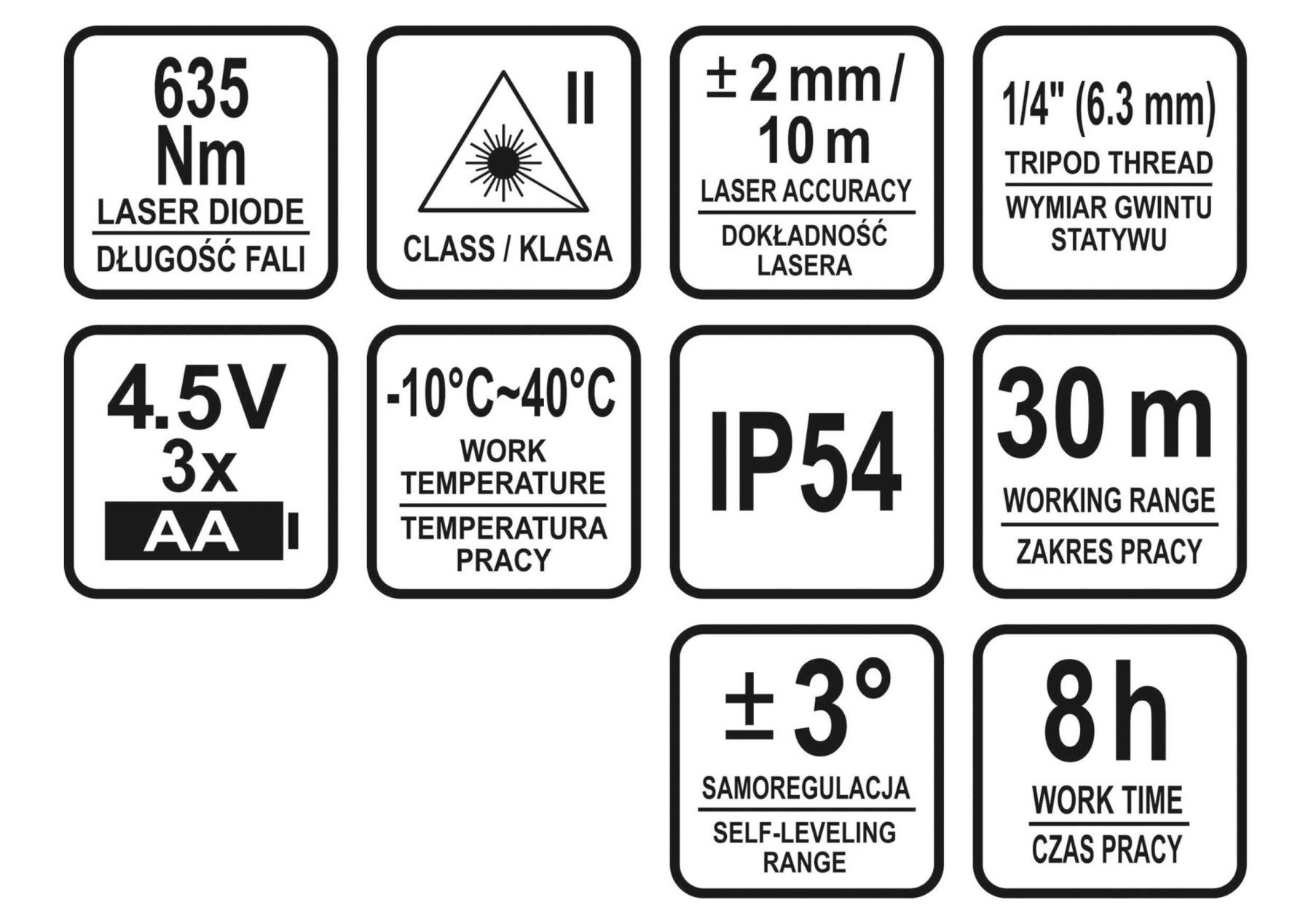 - Точність лазера - ±2 мм / 10 м