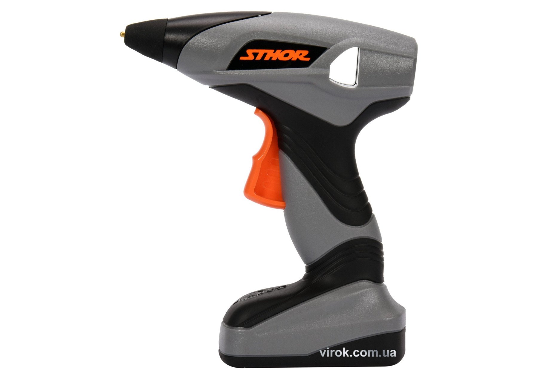 Компактний клейовий пістолет STHOR 78154 з літій-іонним акумулятором 7.2 В підходить для нанесення клейових стрержнів діаметром 7.2 мм. Застосовується для моделювання, фіксації, ремонту, герметизації та розшивки. Пістолетом можна склеювати різні матеріали: дерево, пластик, метал, кераміку, скло, текстиль, шкіру і багато іншого. Невеликі розміри полегшують маневрування пристроєм і дозволяють працювати у важкодоступних місцях.