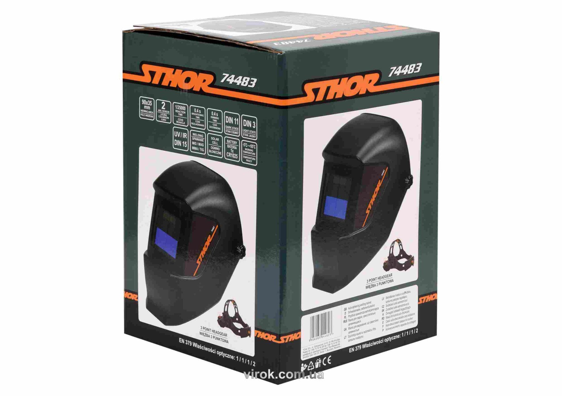 Маска зварювальника STHOR 74483 з автоматичним фільтром - це засіб захисту для очей і обличчя категорії II, призначений для індивідуального захисту очей та обличчя від механічних і світлових впливів. Маска має підвищену механічну міцність.