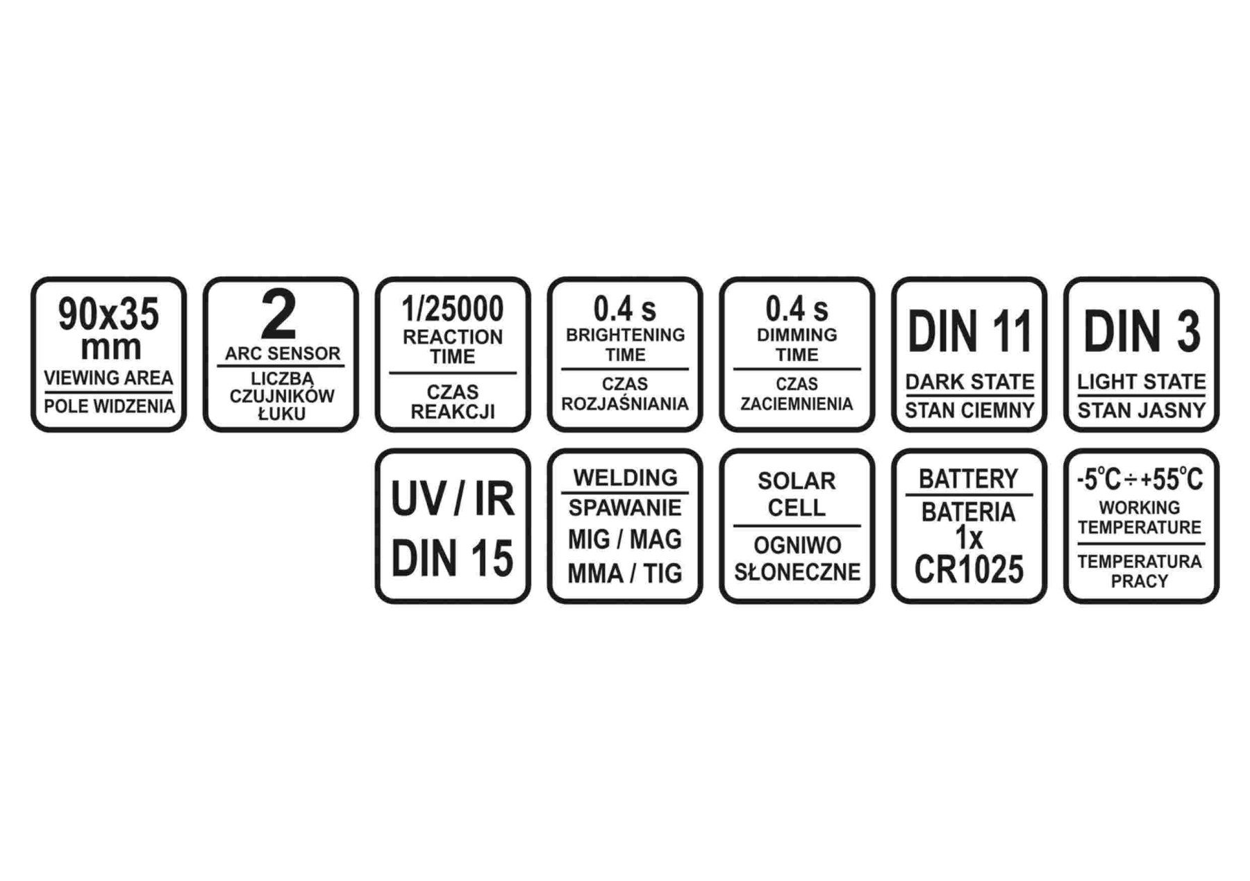 - Ступінь затемнення - DIN 11