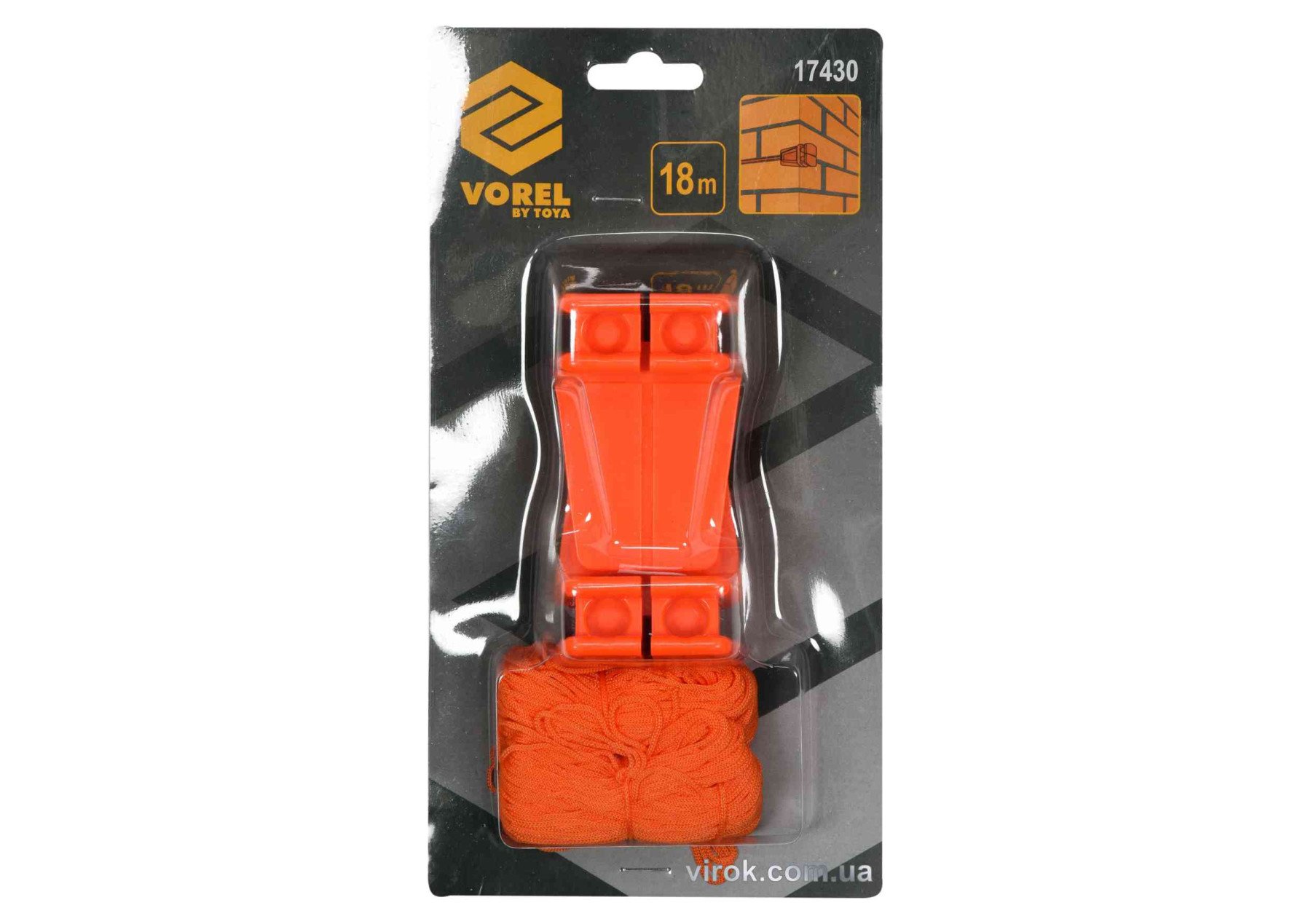 VOREL Тримачі кутові мулярські з трасовочним шнуром l= 18 м, 2 шт | 17430