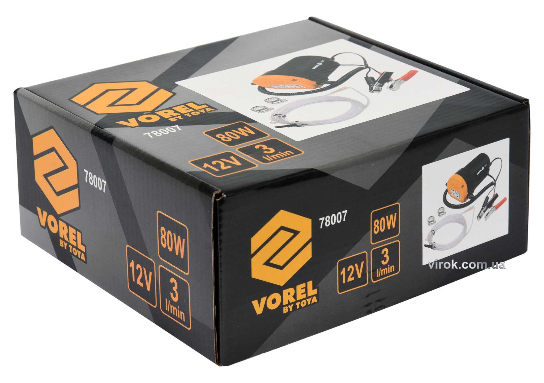 VOREL Помпа для перекачування оливи електрична : живлення від акумулятора 12 В, 80 Вт, 3 л/хв | 78007