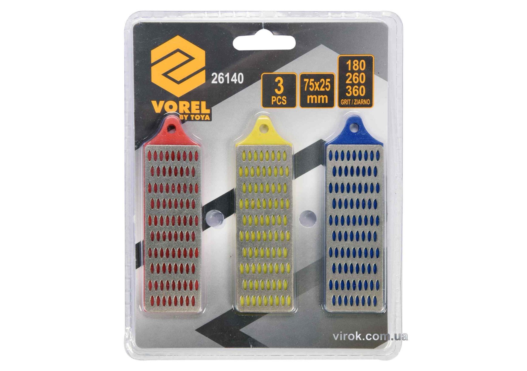 VOREL Набір брусків абразивних, алмазних, для заточування : 75х25 мм, G360/260/180, 3 шт. | 26140
