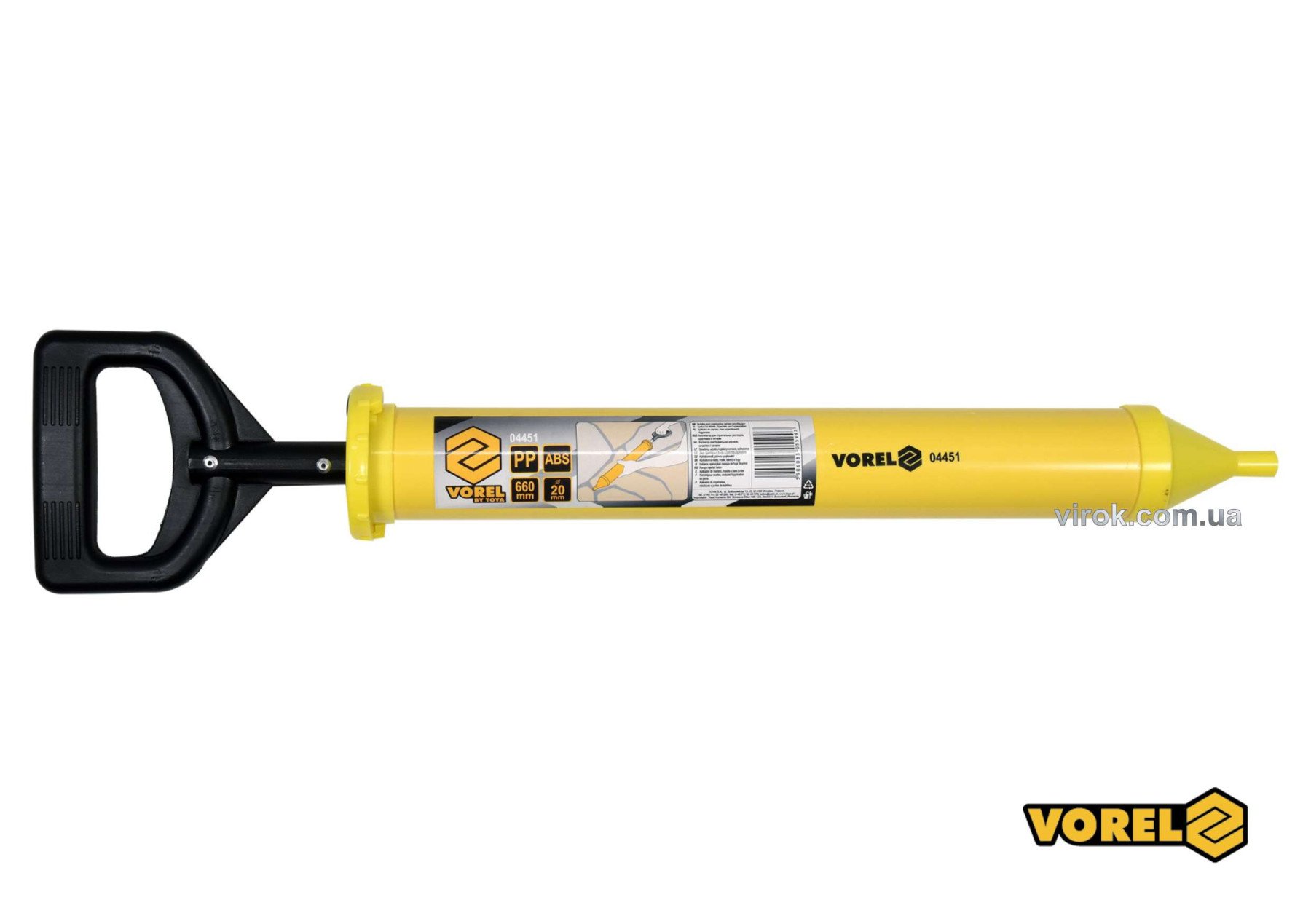 VOREL Шприц для нанесення будівельних сумішей : корпус Ø=60 мм, сопло Ø=10мм. l=660мм, пластиков | 04451