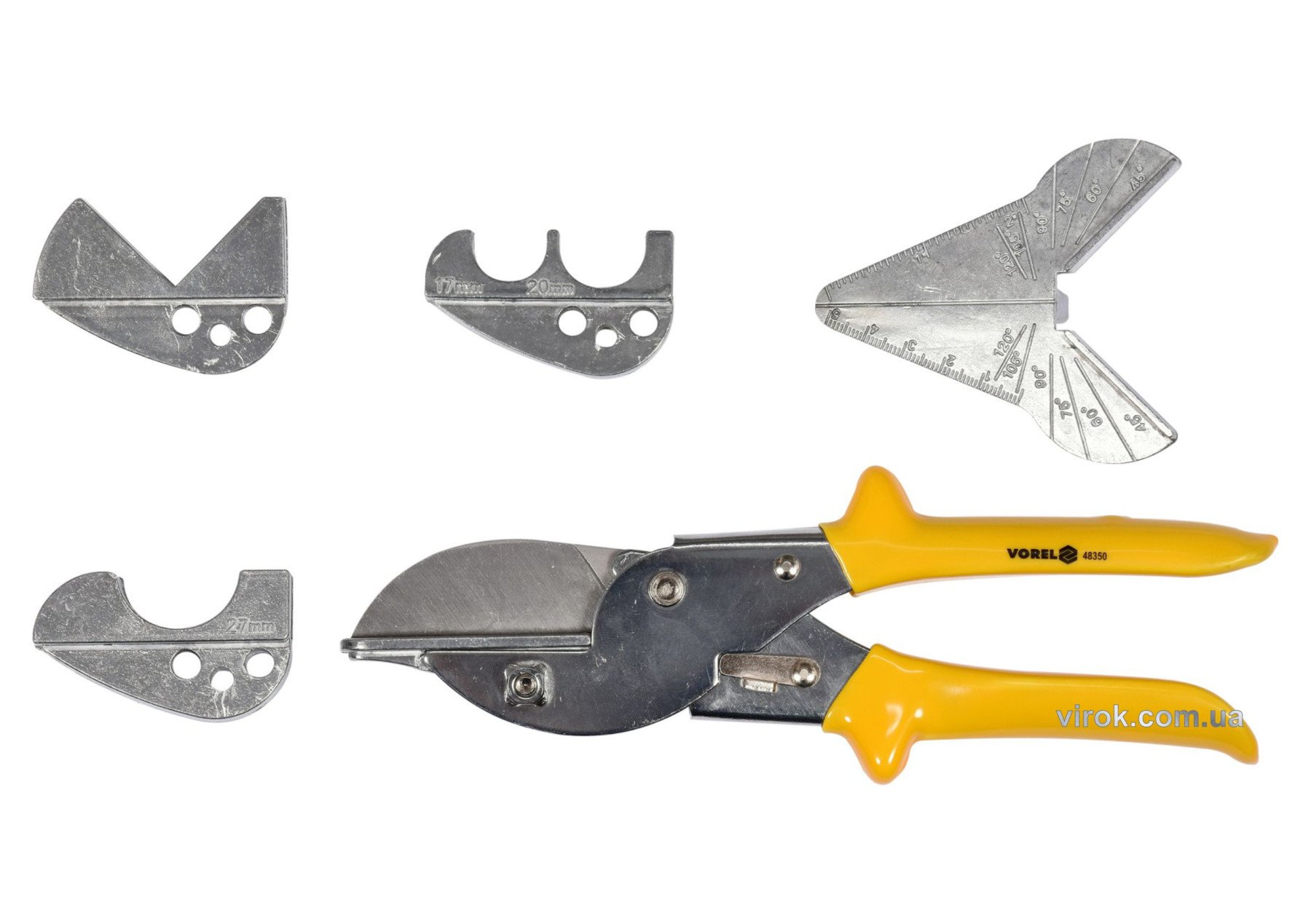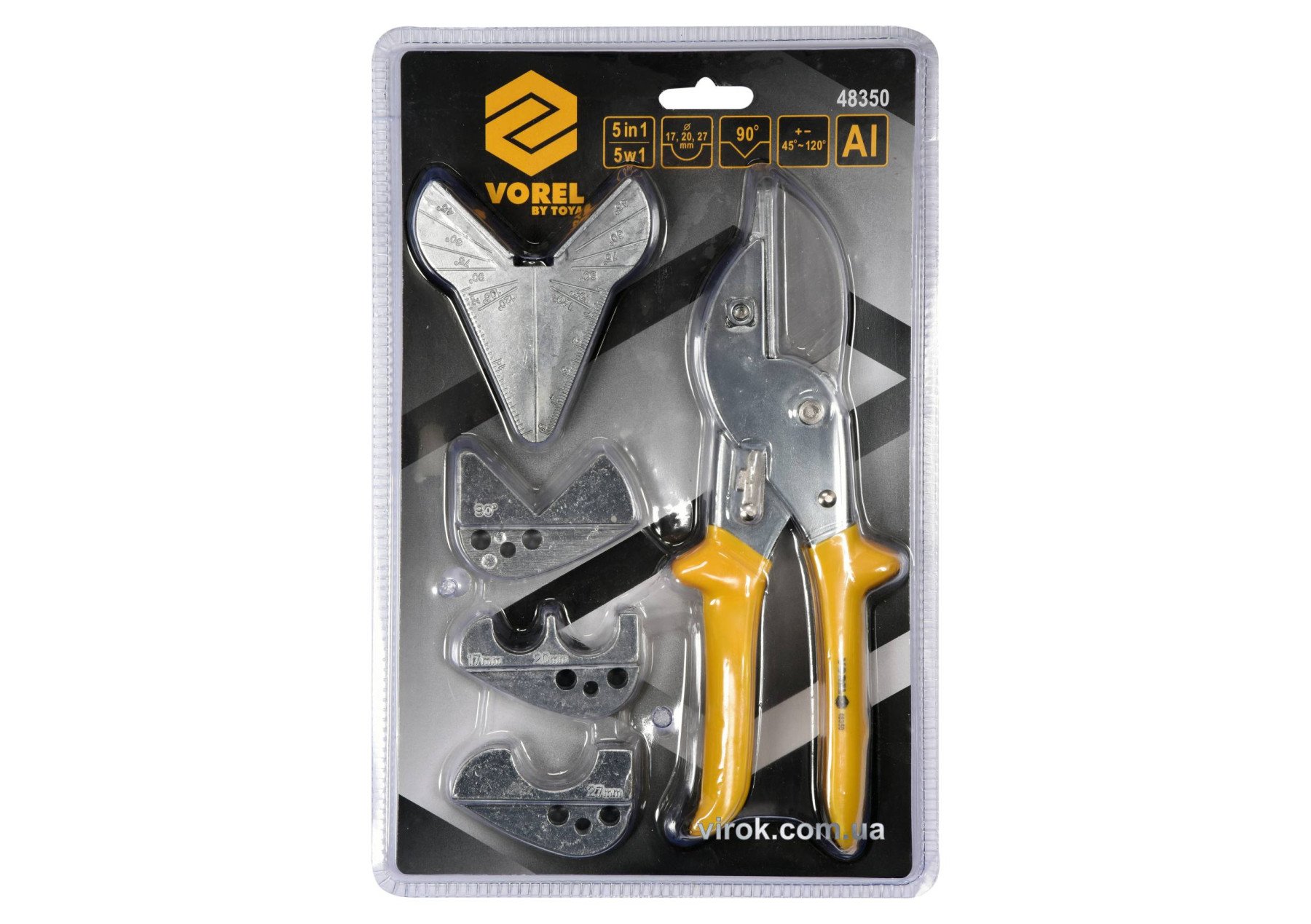 VOREL Ножиці поліфункційні по гумі і пластику l= 220мм, леза l=60мм з 4 додатковими насадками | 48350