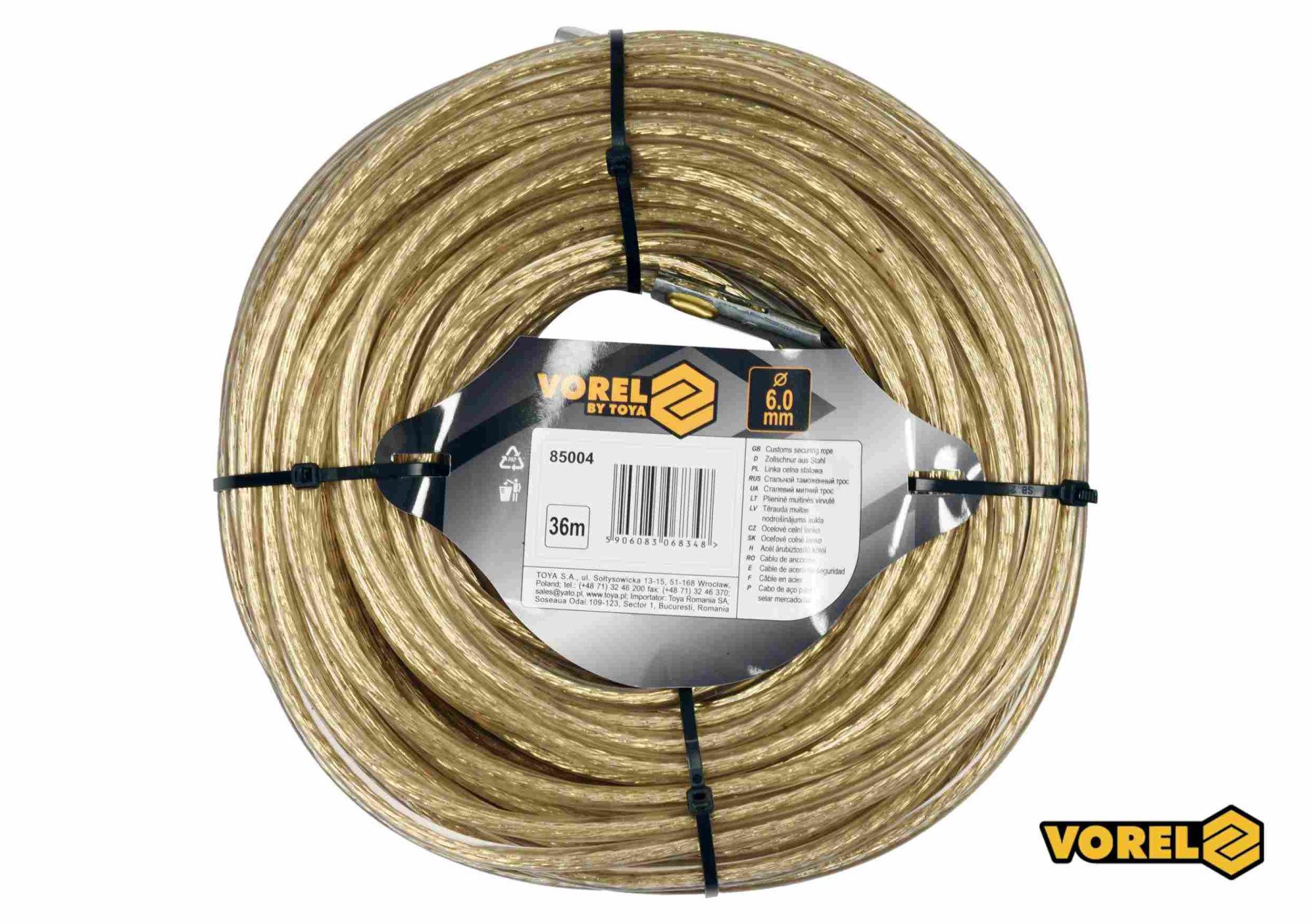 VOREL Трос сталевий з наконечниками для пломб : Ø6 мм x 36 м | 85004