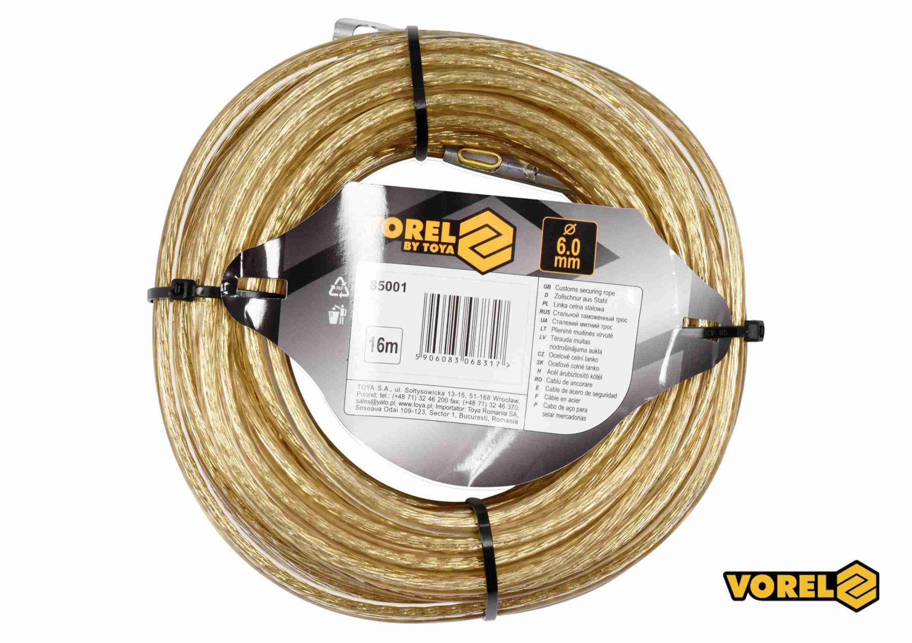 VOREL Трос сталевий з наконечниками для пломб : Ø6 мм x 16 м | 85001
