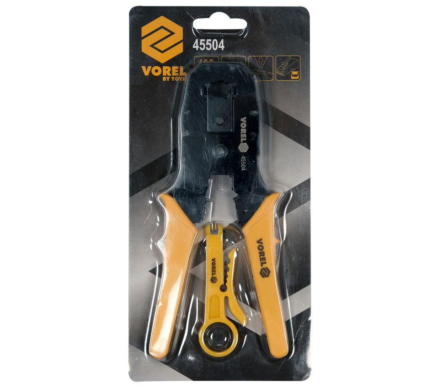 VOREL Кліщі для затискання телефонних і мережевих штепселів : L= 195 мм, RJ45 RJ10 RJ11 | 45504