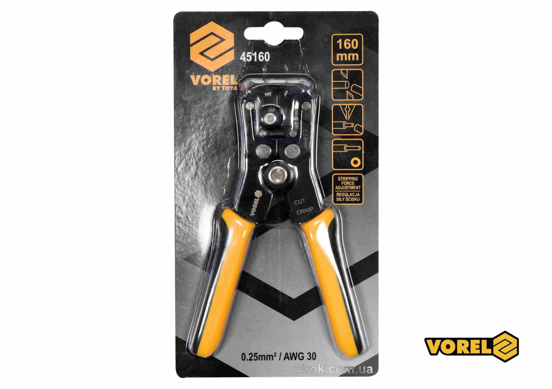 VOREL Знімач ізоляції автоматичний : l= 160 мм, для кабелів 0.2-6 мм² | 45160
