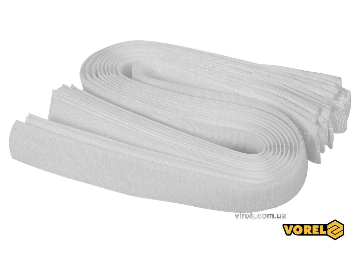 VOREL Хомут-липучка для кабеля : 25 x 450 мм, сірий, нейлон + поліестер + поліуретан, 10 шт | 73845