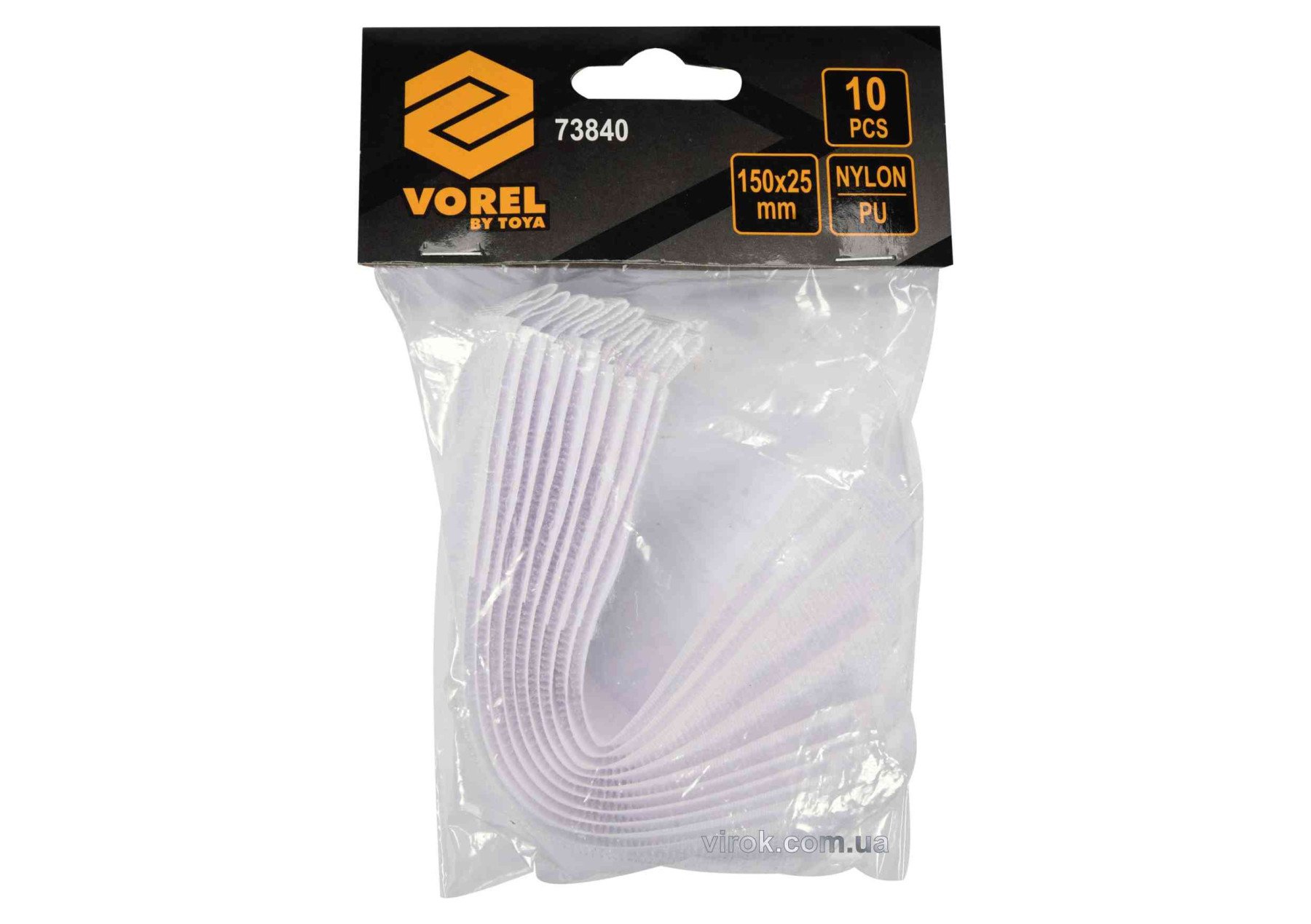 VOREL Хомут-липучка для кабеля : 25 x 150 мм, сірий, нейлон + поліестер + поліуретан, 10 шт | 73840