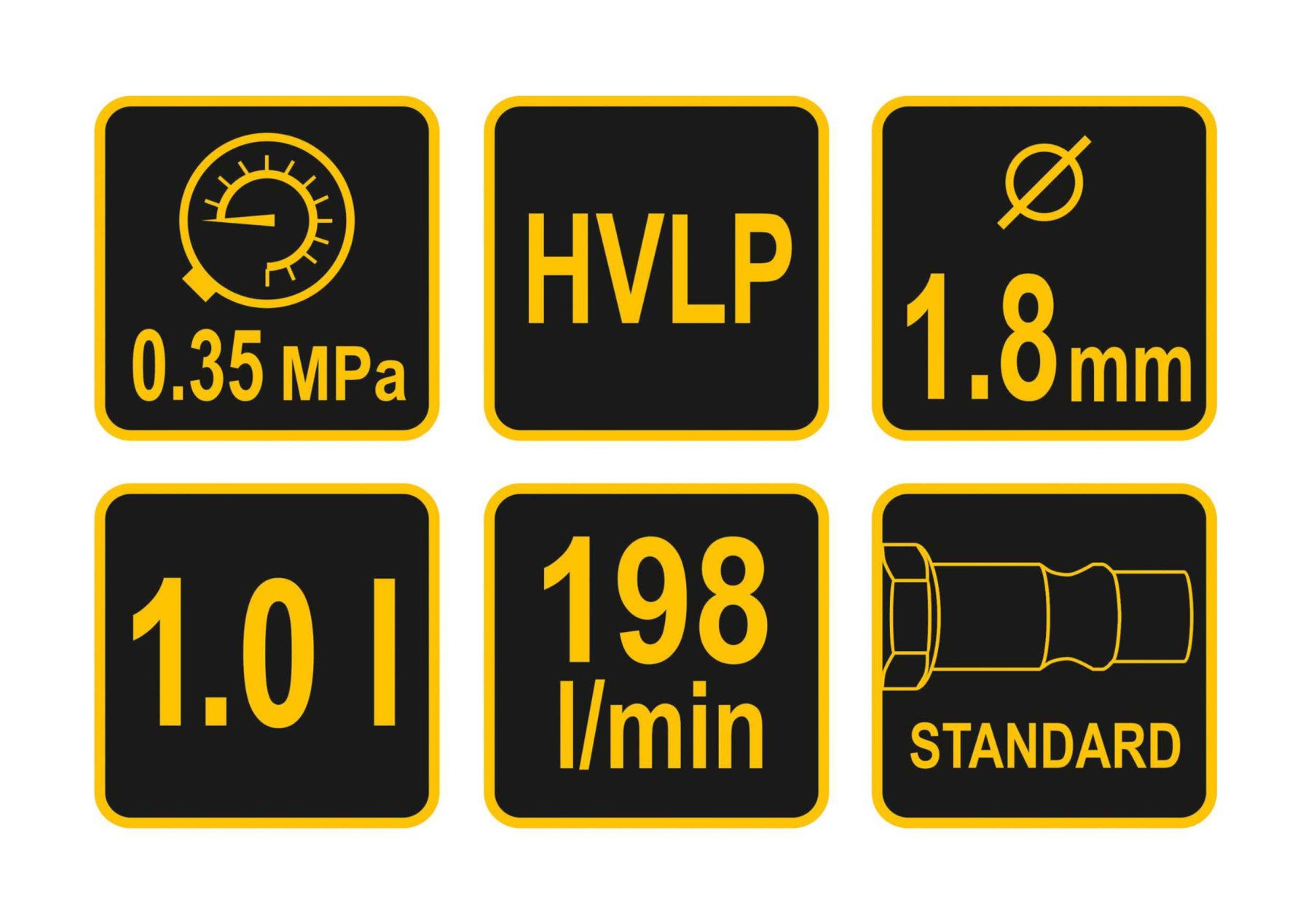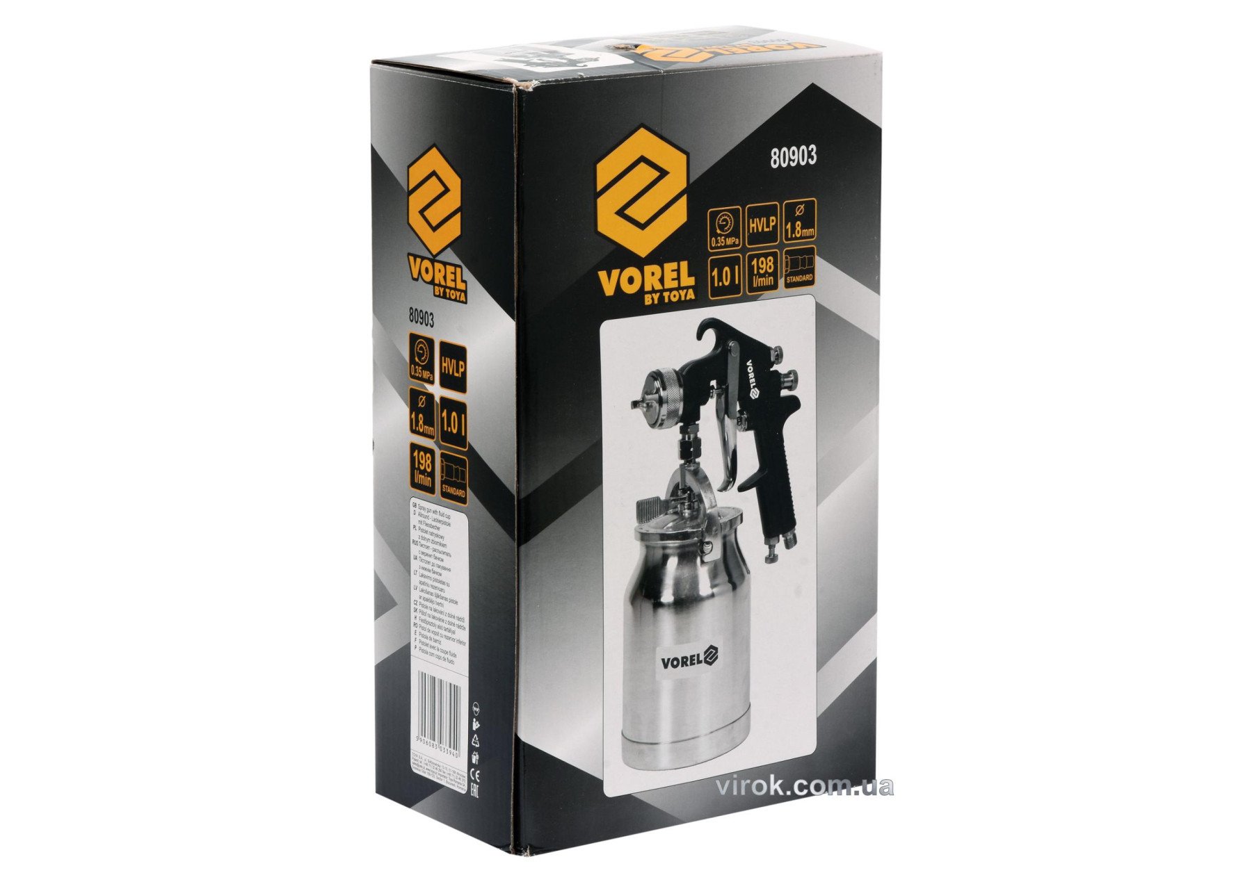 VOREL Пульверизатор HVLP з нижнім бачком V= 1л, роб. тиск = 3-4 bar, сопло Ø= 1,8 | 80903