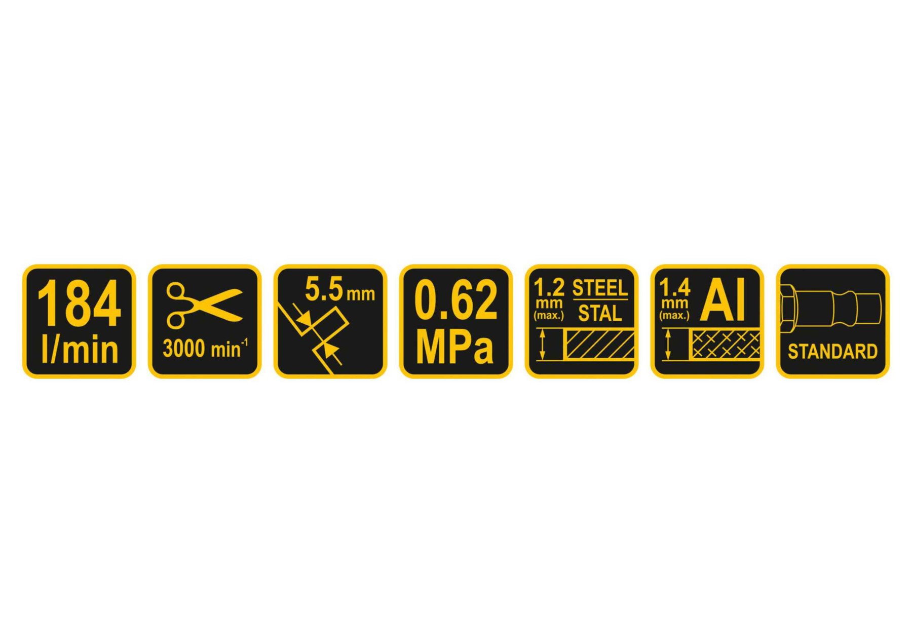 VOREL Ножиці пневматичні прямі : 1/4", 3000 різ/хв, до стал.листів h≤1.2мм, P=0.62 МПа, 184 л/хв | 81072