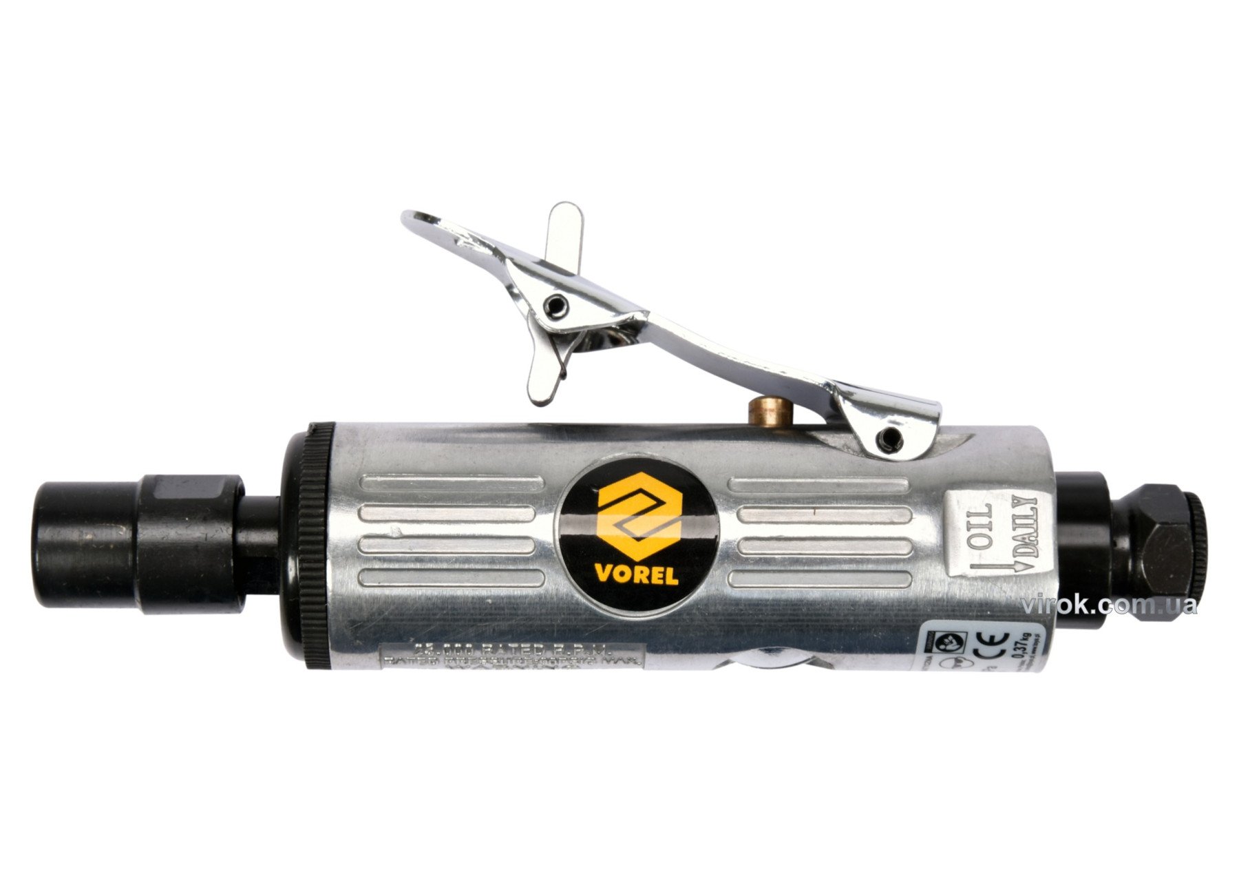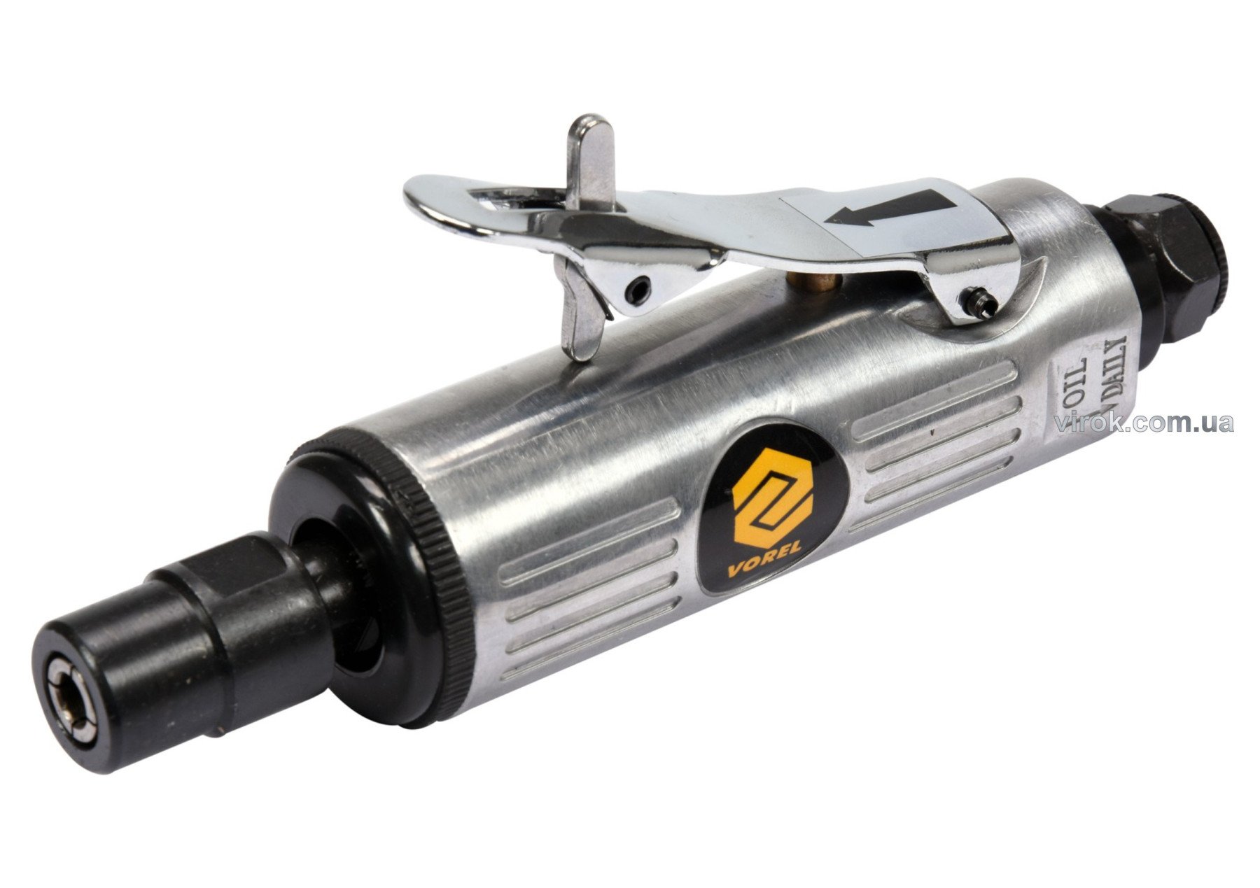 VOREL Шліфмашина пневматична пряма : Ø 1/4", патрон Ø= 6 мм, тиск- 6,3 Bar, 100 л/хв | 81107