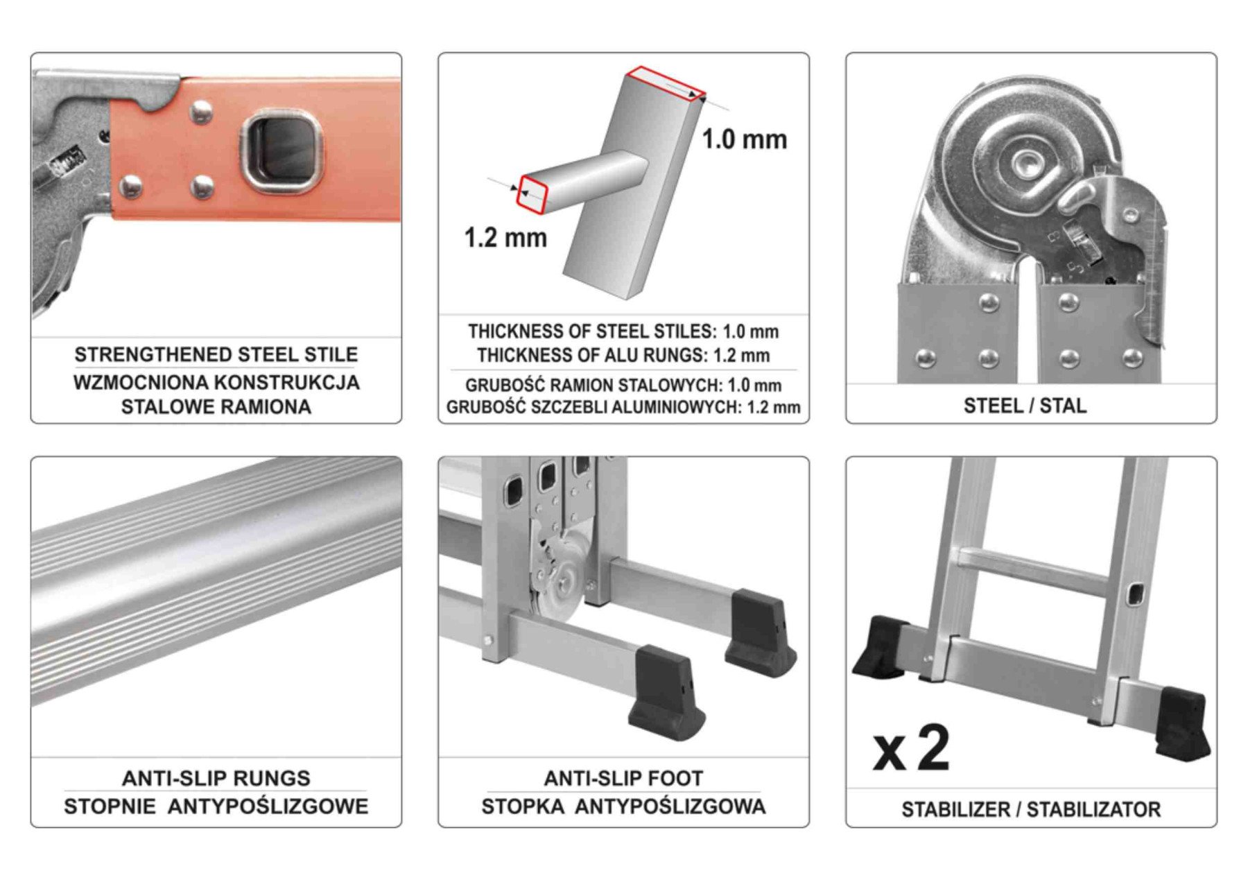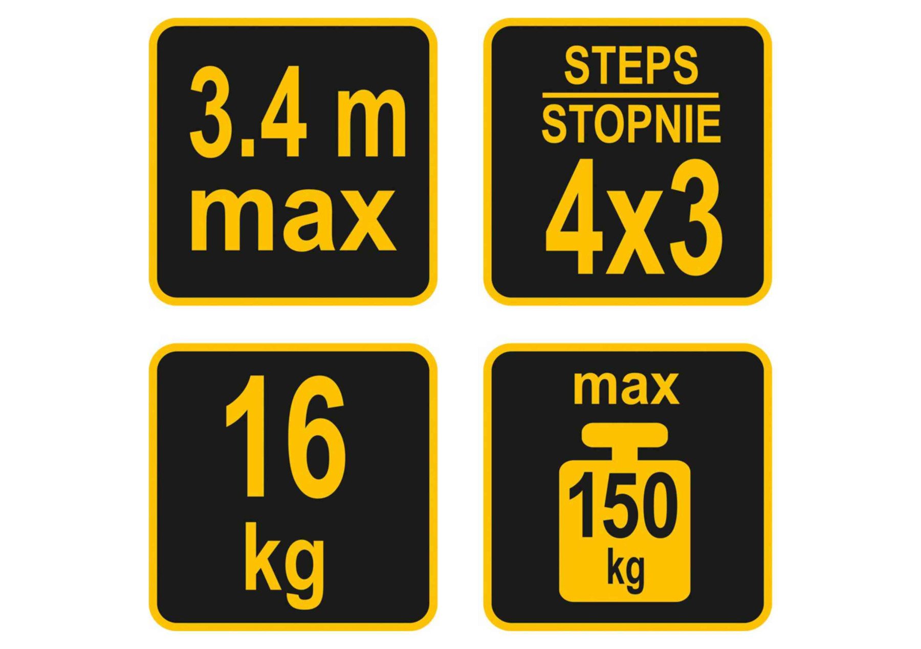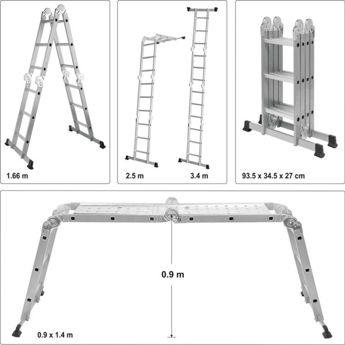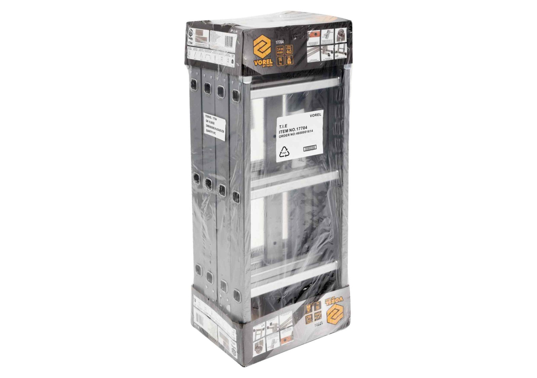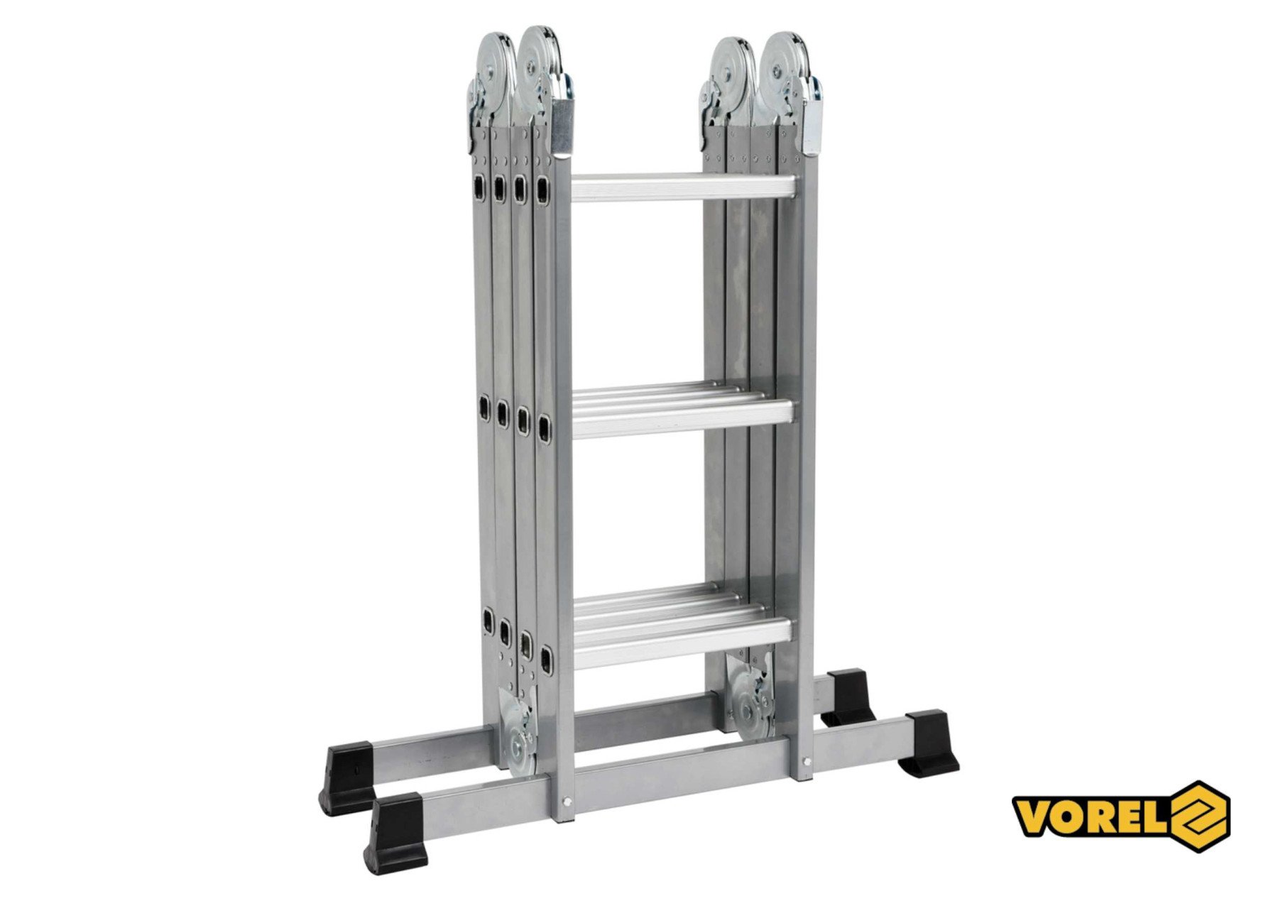 VOREL Драбина розкладна : 4 секції x 3 сходини, h=3.4 м, 94х35х27 см, алюміній+сталь | 17704