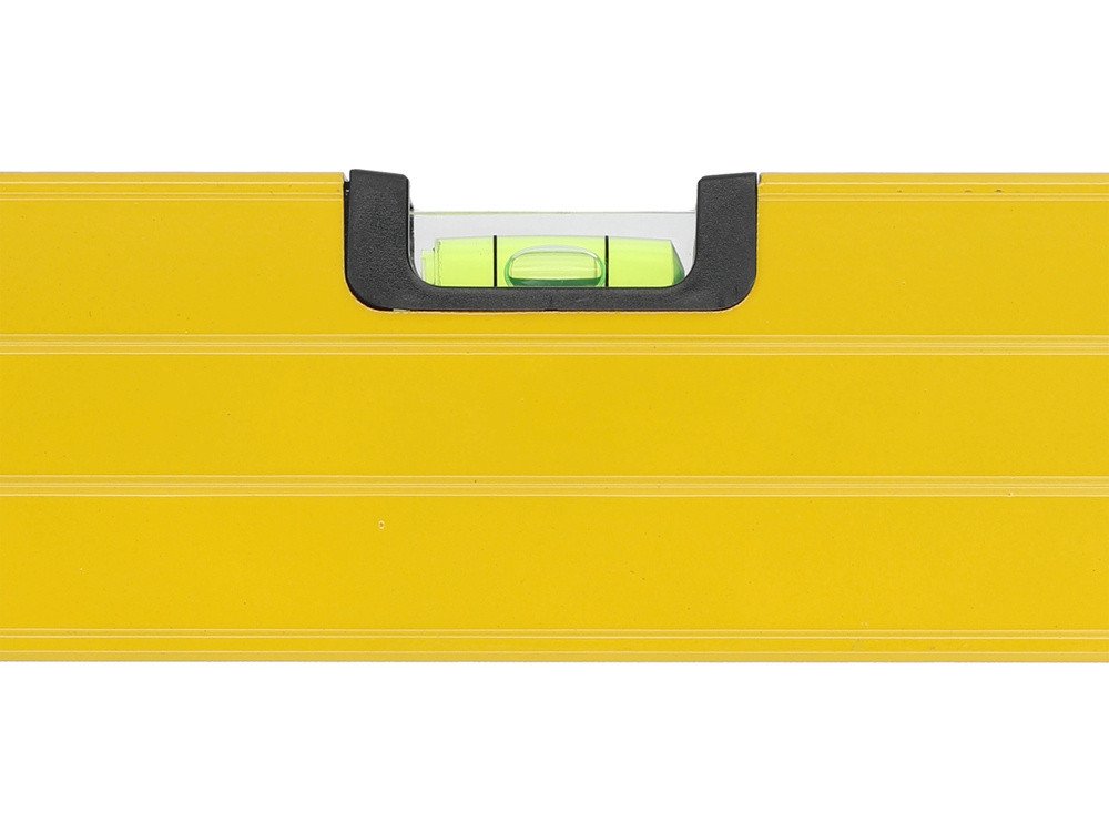 Рівень з алюмінієвого профілю. Має дві ручки і три рівні для визначення вертикалі, горизонталі та кута 45°. Торці рівня і рама рівня захищені від пошкоджень гнучкими пластиковими вставками.