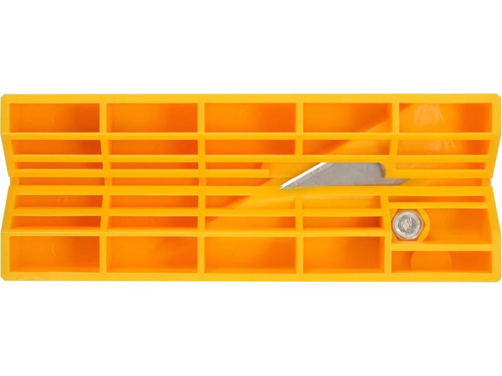 Рубанок для гіпсокартону. У робочій площині є напрямний канал, який розташовує лезо під кутом 90°. Швелер використовується для вирівнювання кромок дощок 18 мм. матеріал корпусу: ABS порожнисте лезо 18 мм розміри: 155 х 54 х 45 мм