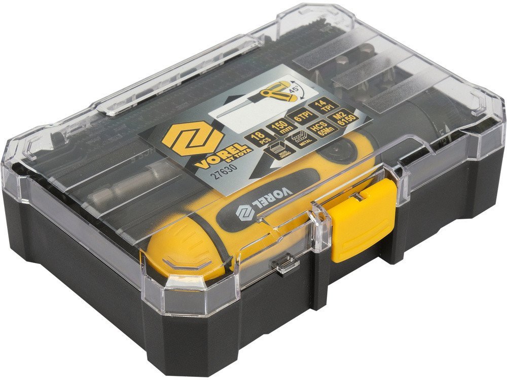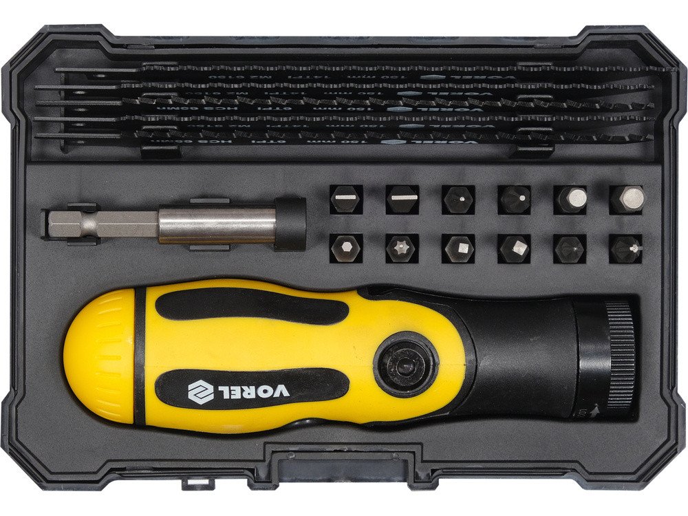 Тримач багнетний різальних полотен і викр. вставок VOREL, l= 150 мм з полотнами і бітами, наб. 18 ел