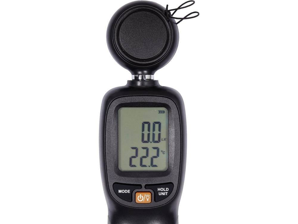 Світломір (люксметр) — прилад для реєстрації рівня яскравості освітлення. Широкий діапазон вимірювань дозволить вимірювати яскравість як одного світлодіода, так і промислових прожекторів. Найчастіше використовується для вимірювання освітленості в офісних приміщеннях, школах і на заводах. Крім інтенсивності освітлення, лічильник дозволяє контролювати температуру навколишнього середовища. Просте управління, великі цифри на дисплеї, ряд функцій, що полегшують роботу, і профільований корпус, який ідеально лежить в руці, роблять роботу з цим лічильником легкою і приємною. Кнопка Max/Min: фіксує найвище/найнижче значення поточного вимірювання на екрані Кнопка утримання даних: фіксує поточне значення вимірювання на екрані Відносне значення: встановлює поточне відображуване значення як еталонне значення. Якщо цю функцію ввімкнено, наступні вимірювання вказуватимуть на відхилення від контрольного значення. Автоматичний і ручний запис даних: пристрій дозволяє автоматично записувати 1000 вимірювань з інтервалом 10 секунд і ручний запис із пам'яттю для 67 вимірювань. Пристрій автоматично вимикається через 15 хвилин бездіяльності. Налаштування можна деактивувати при включенні пристрою. Технічні дані: частота оновлення екрану: 2 рази в секунду діапазон вимірювання освітленості: 0~200 000 люкс роздільна здатність: 0.1Lux точність: ±3% rdg (нижче 10000 люкс), ±4% rdg (понад 10000 люкс) одиниці: LX - люкс, FC - фут-свічка діапазон вимірювання температури: -9,9°C ~ 49,9°C точність: ± 1°C екран з підсвічуванням блок живлення: 3xAAA Гніздо для штатива 1/4'' розміри: 56*193*36 мм вага: 123 г (без батарейок)