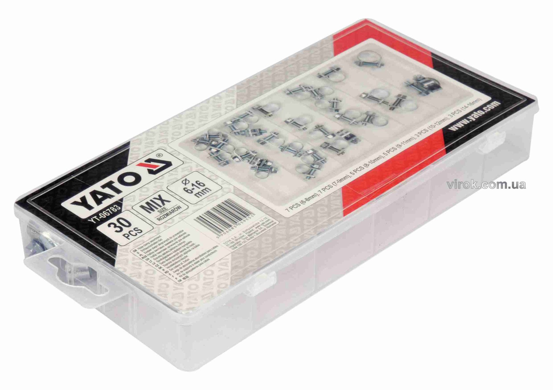 YATO Хомути гвинтозатяжні металеві YATO : Ø= 6-16 мм, 30 шт | YT-06783