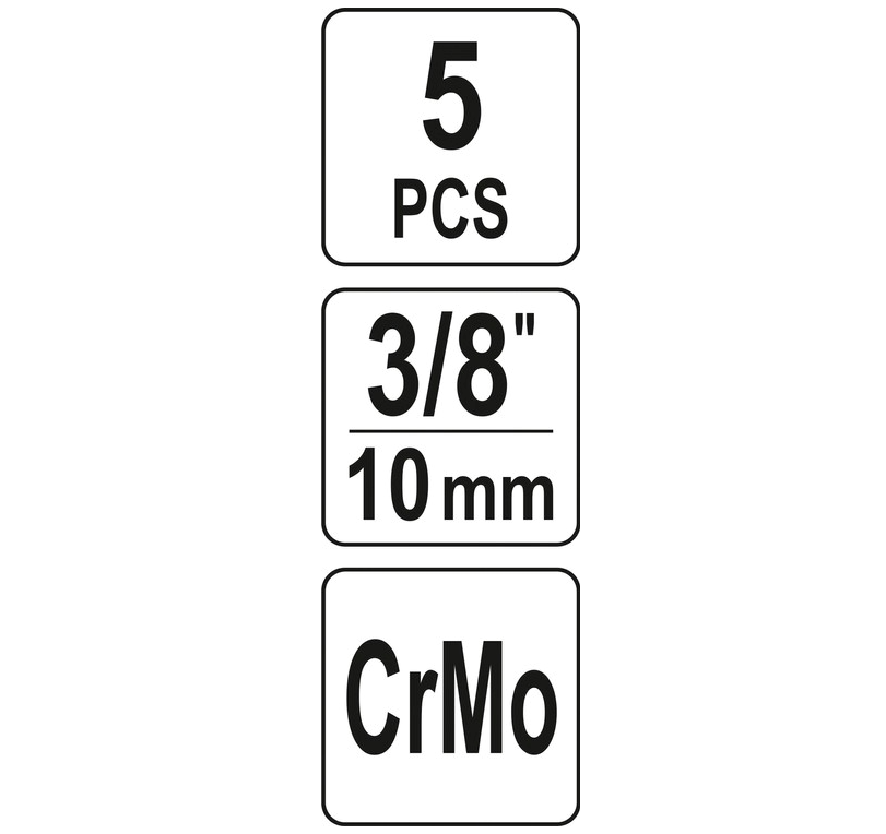 YATO Набір головок для видал. зломаних гвинтів YATO : квадрат 3/8", М10, 11, 13, 14, 16 мм, 5 шт. в футл. | YT-06038