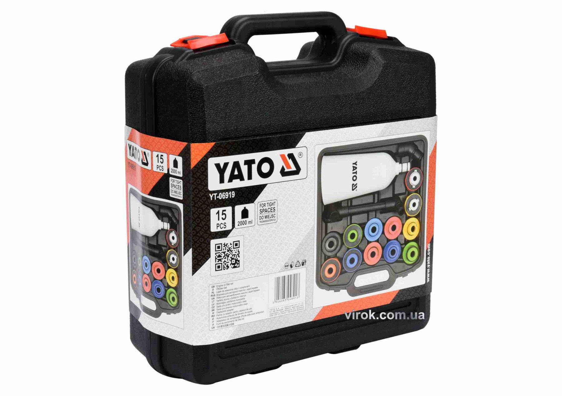YATO Лійка для заливу оливи в двигуни YATO : V= 2 л, з 12 адаптерами; компл. 15 елем. | YT-06919