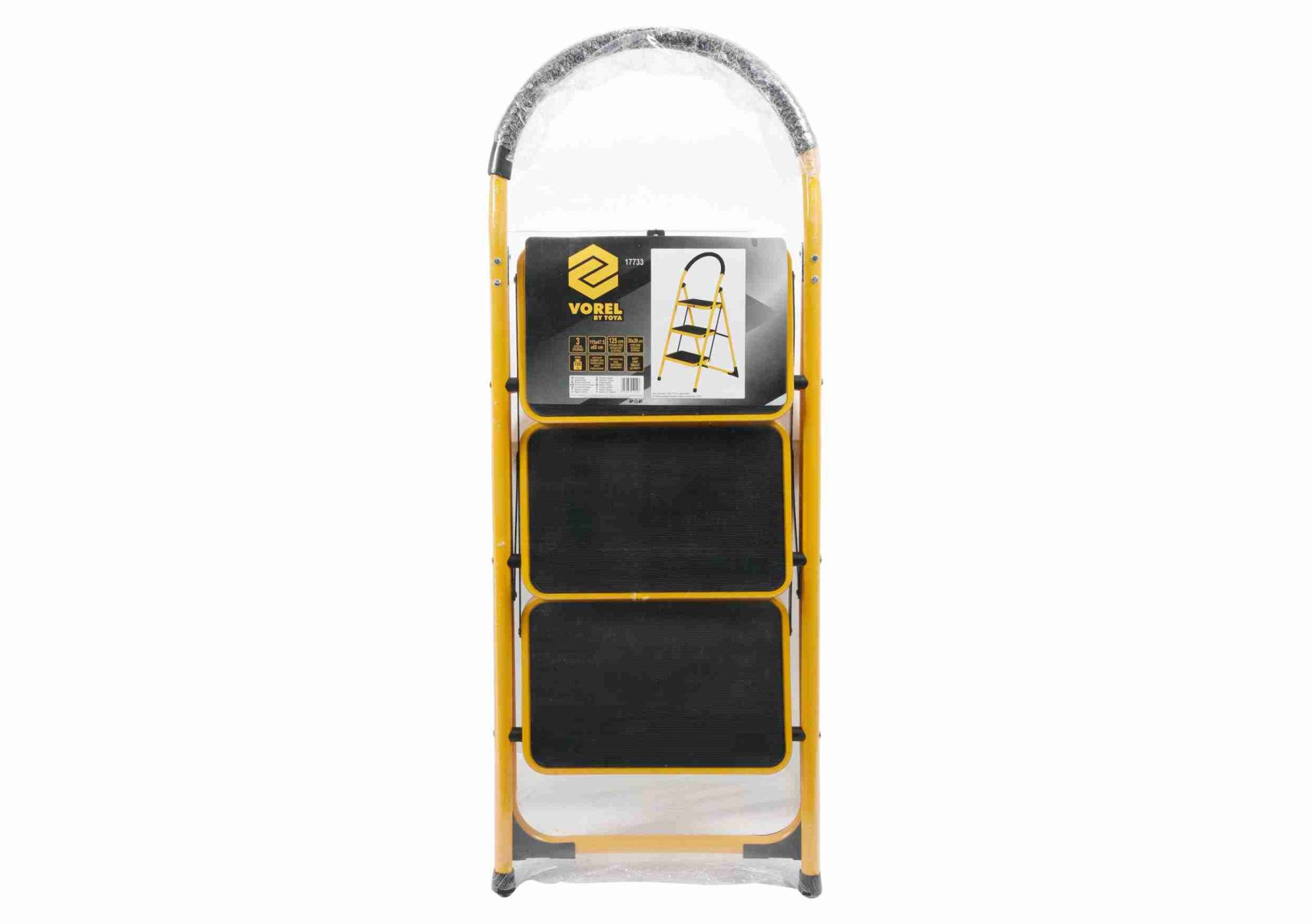 Драбина розкладна металева VOREL : 3 сходинки 36х26 см з антиковзальною прокладкою 115х47х65 см [2]